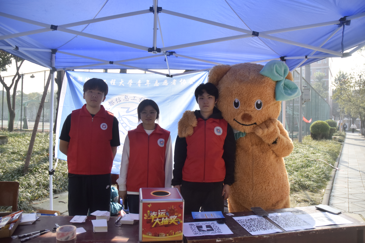 活动现场,身着玩偶服装的志愿者主动走向来往同学,以热情的拥抱和真诚的笑容,为大家带来轻松与鼓励。同学们在互动中缓解压力、绽放笑容,感受来自陌生人的温暖与陪伴。为增强活动的趣味性与参与感,现场还设置了套圈、幸运转盘、知识问答等互动环节。参与同学在体验游戏乐趣的同时,也收获了来自冬日的“小礼物”。