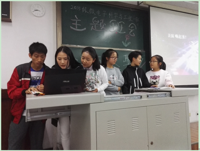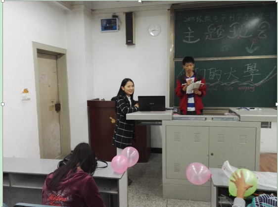 2015年11月2日星期一晚上八点,班导何雨辰、罗雪冰、班长穆天增以及微电一班的班委带领微电一班的同学们举行了一晚有趣富有特色的班会