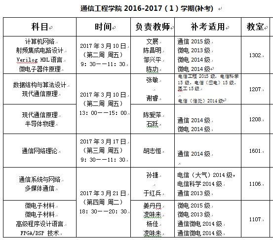 2016-2017(1)补考安排(william威廉英国官网承担课程)