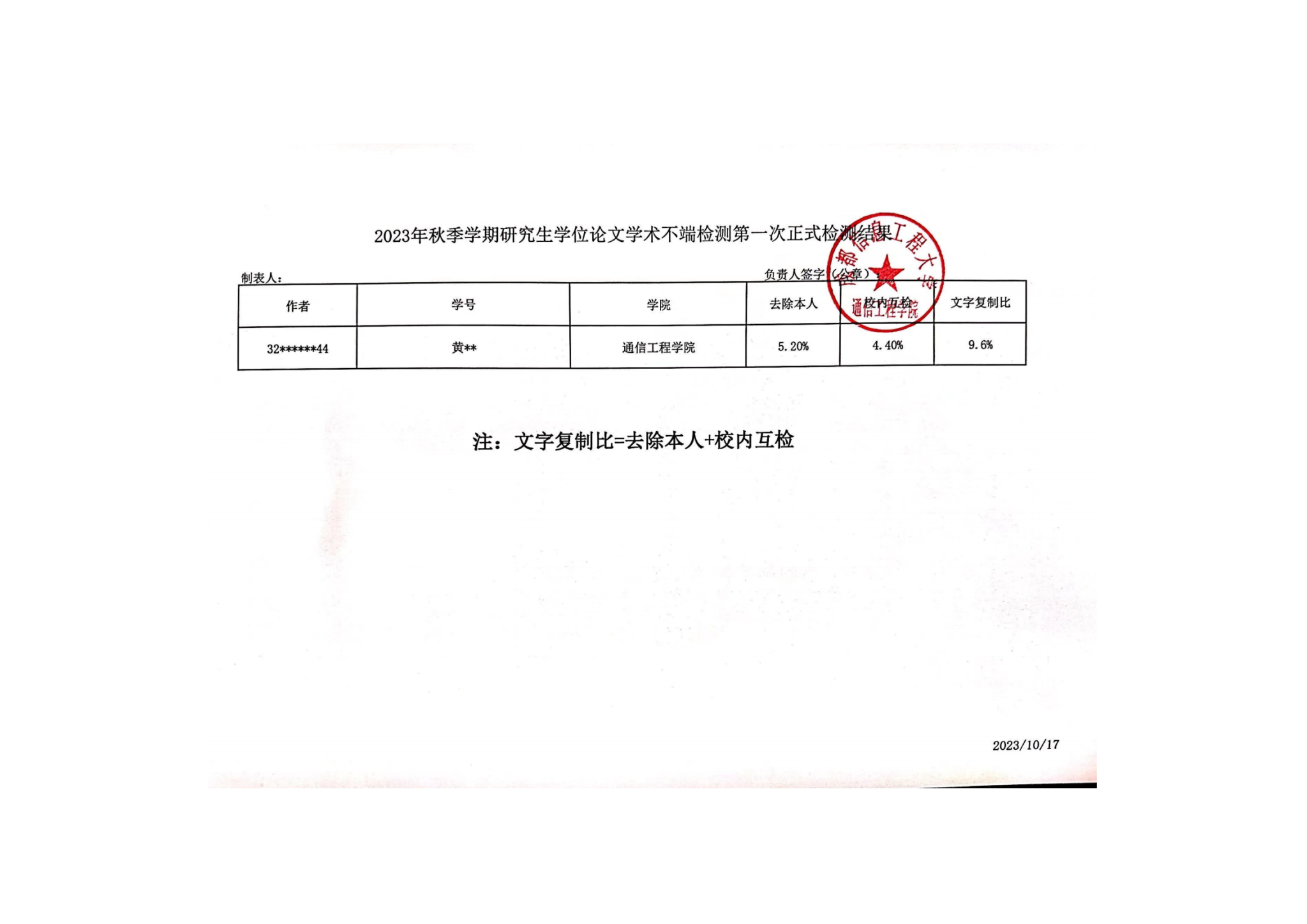 2023年秋季学期研究生学位论文学术不端检测结果-通信-公示