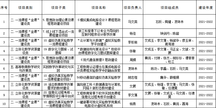经学院教指委成员组初审,对本院申报的11个项目进行意见反馈后,将合并的10个推荐项目已经进行资格审查,符合《成都信息工程大学本科教育教学研究与改革项目暨本科教学工程项目申报指南》的申报条件要求,特此公示如下: