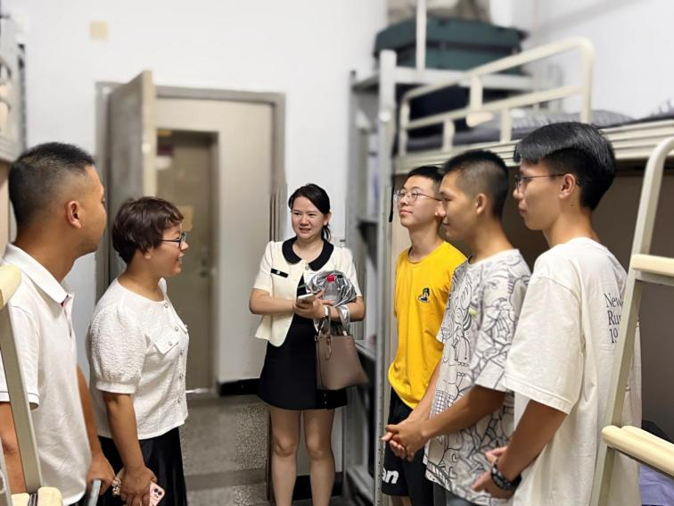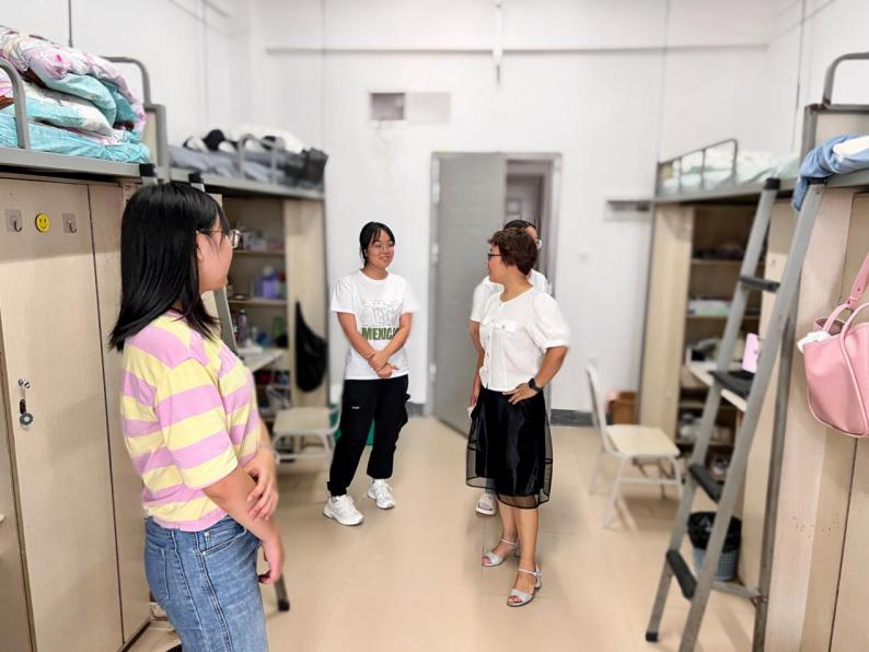 9月4日下午,学院党委书记马文英、副书记刘畅、新生辅导员彭靖涵一同深入新生宿舍,与学生面对面交流,了解详细情况,解决实际问题。