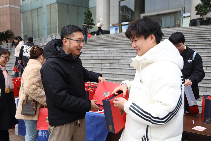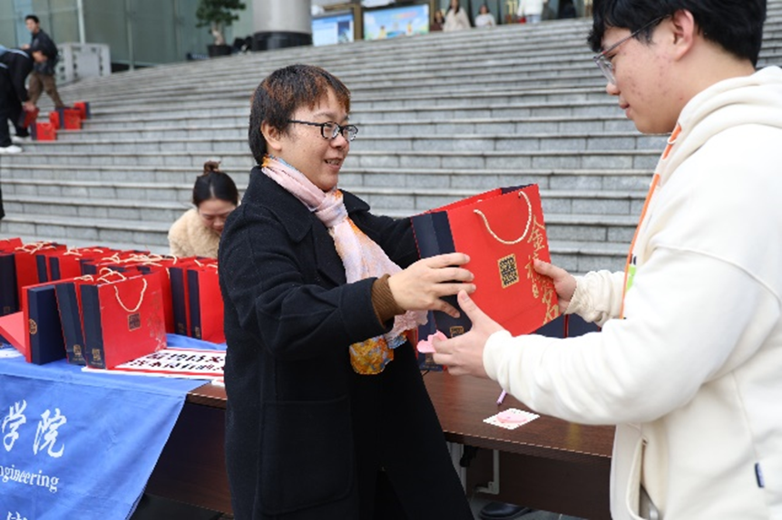寒冬融暖意,逐梦考研路。随着2025全国硕士研究生统一招生考试临近,为进一步坚定我院考研学生的备考信心、缓解备考压力、鼓舞备考斗志。12月11日中午,学院在图书馆门口举行考研慰问会,党委书记马文英、院长李英祥、副院长李文藻、团委书记盛小芳、2021级辅导员李芳,共同为考研学子送上最真挚的祝福和关怀。