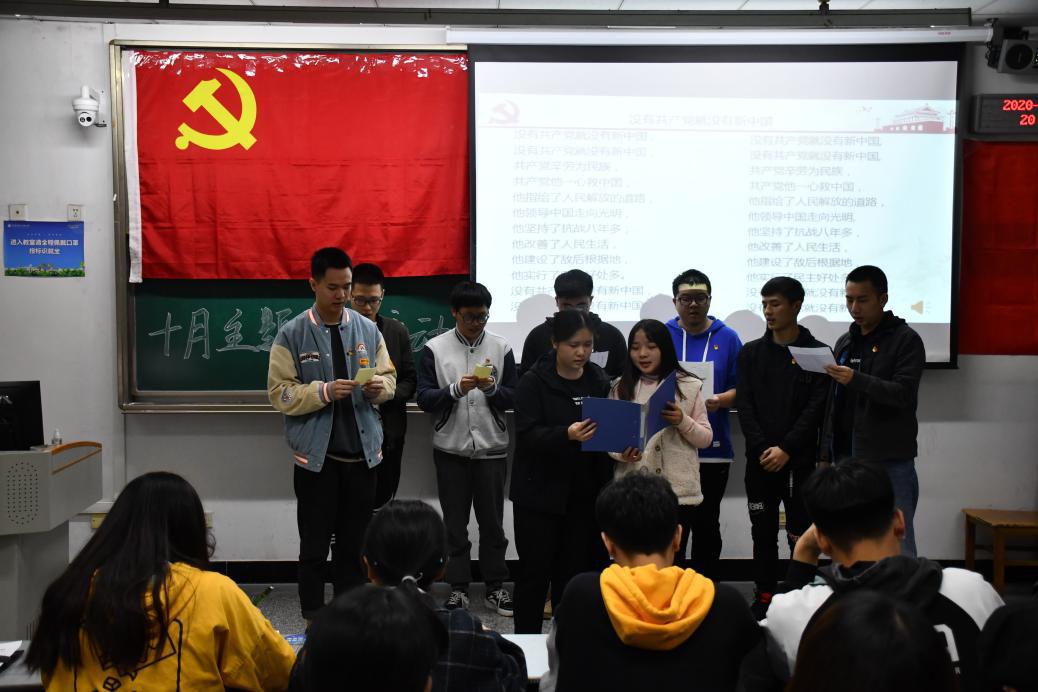 为鼓舞人心,催人奋进,深入学习践行十九大精神,william威廉英国官网学生党支部于10月20日在1208教室开展了“飞扬红歌情,唱响中国梦”主题党日活动,旨在组织党员同志们从一首首红歌中追寻先辈脚步,分享红歌背后的故事。参加本次活动的有william威廉英国官网学生党支部全体支委、支委助理及全体党员。