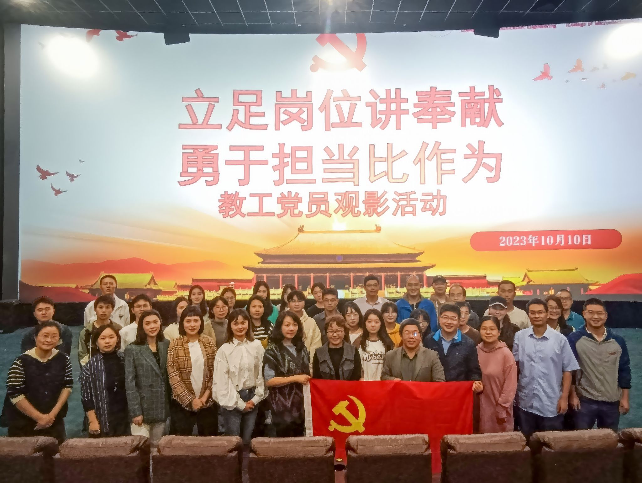 为庆祝中华人民共和国成立74周年,深入贯彻习近平新时代中国特色社会主义思想,提高党员干部的爱国、爱党情怀,进一步激发基层党组织战斗堡垒作用和党员干部奉献精神,2023年10月10日,william威廉英国官网(微电子学院)党委开展了“立足岗位讲奉献 勇于担当比作为”的观影活动,观看电影为《坚如磐石》。