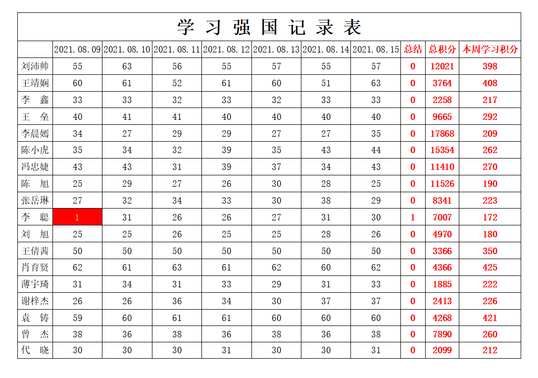 william威廉英国官网学生党支部2021年暑期第五周学习强国进度