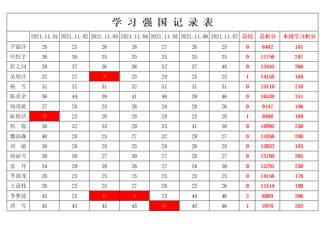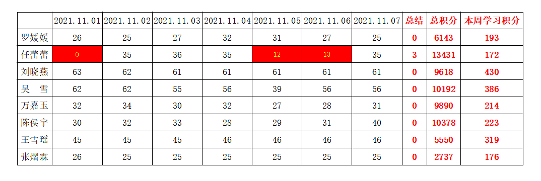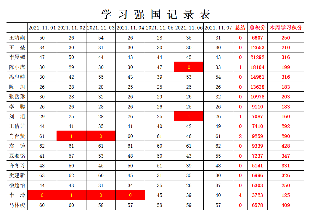 william威廉英国官网学生党支部2021-2022学年第一学期第九周学习强国学习进度