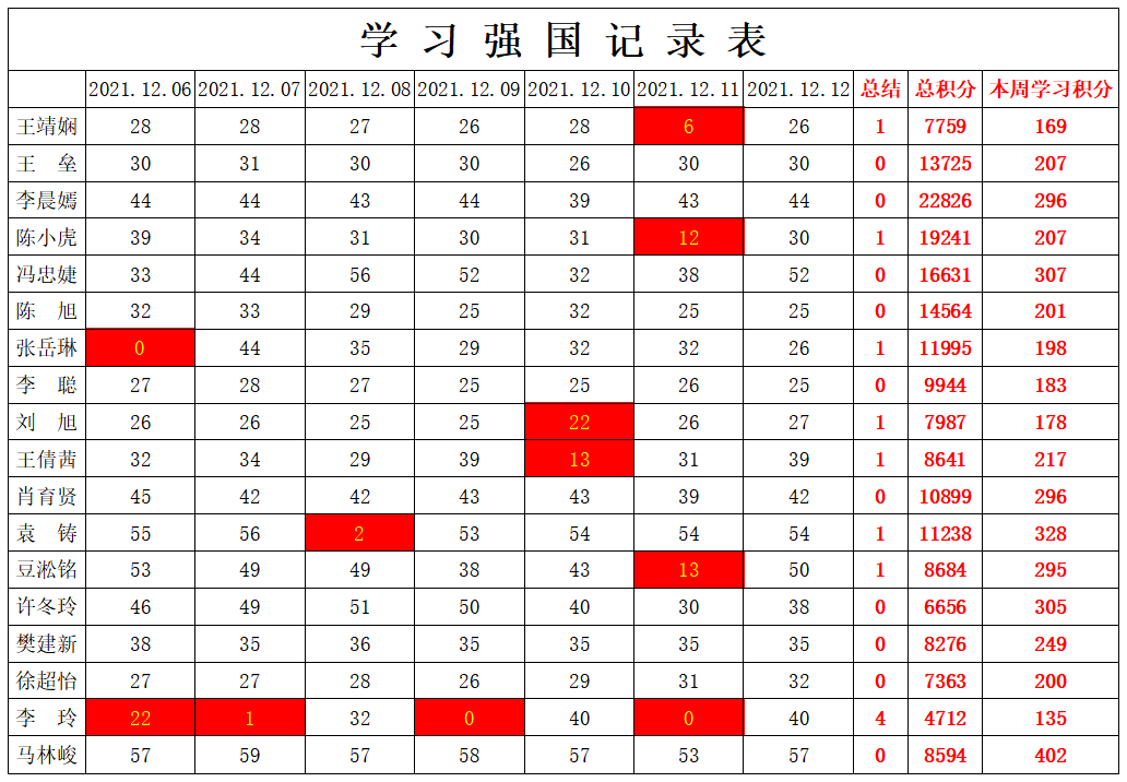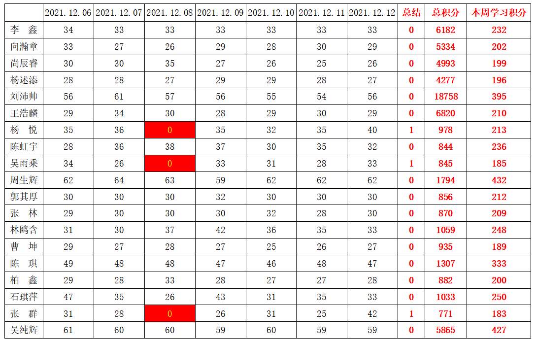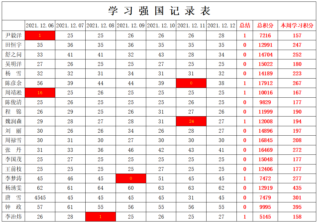 william威廉英国官网学生党支部2021-2022学年第一学期第十四周学习强国学习进度