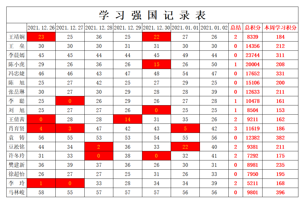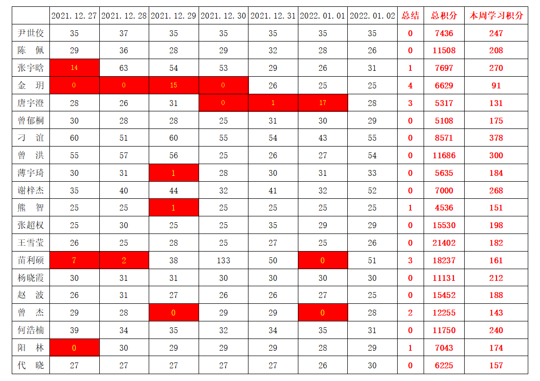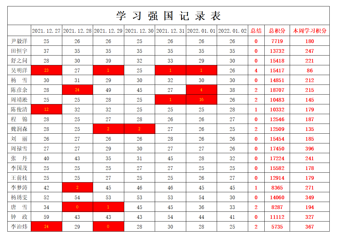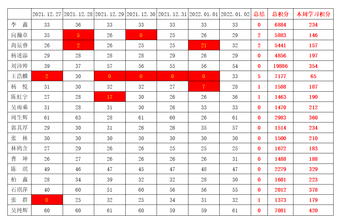 william威廉英国官网学生党支部2021-2022学年第一学期第十七周学习强国学习进度