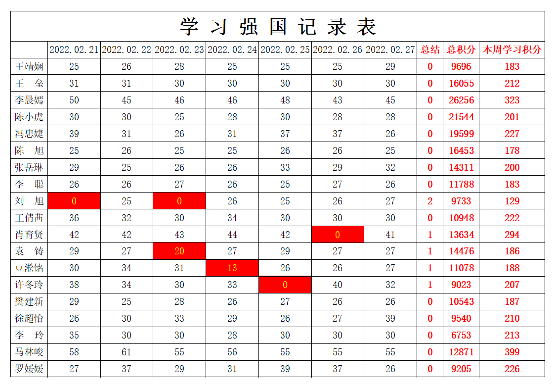 william威廉英国官网学生党支部2021-2022学年第二学期第一周学习强国学习进度