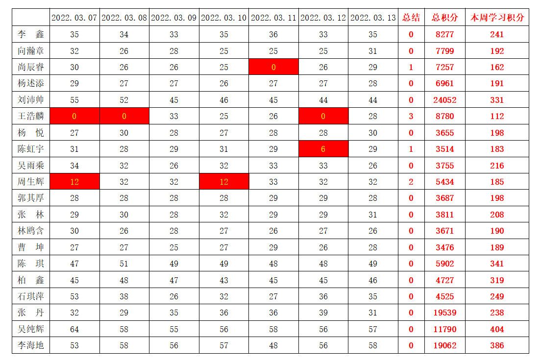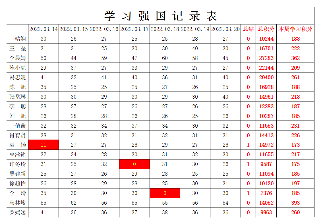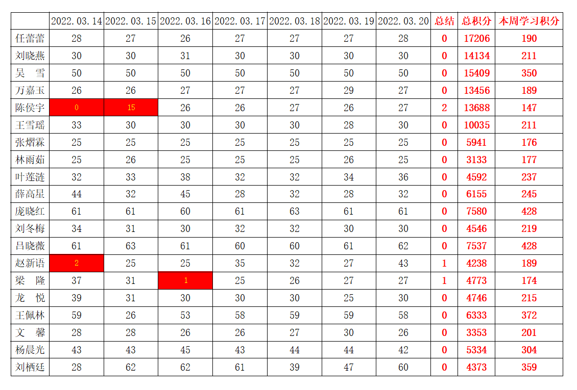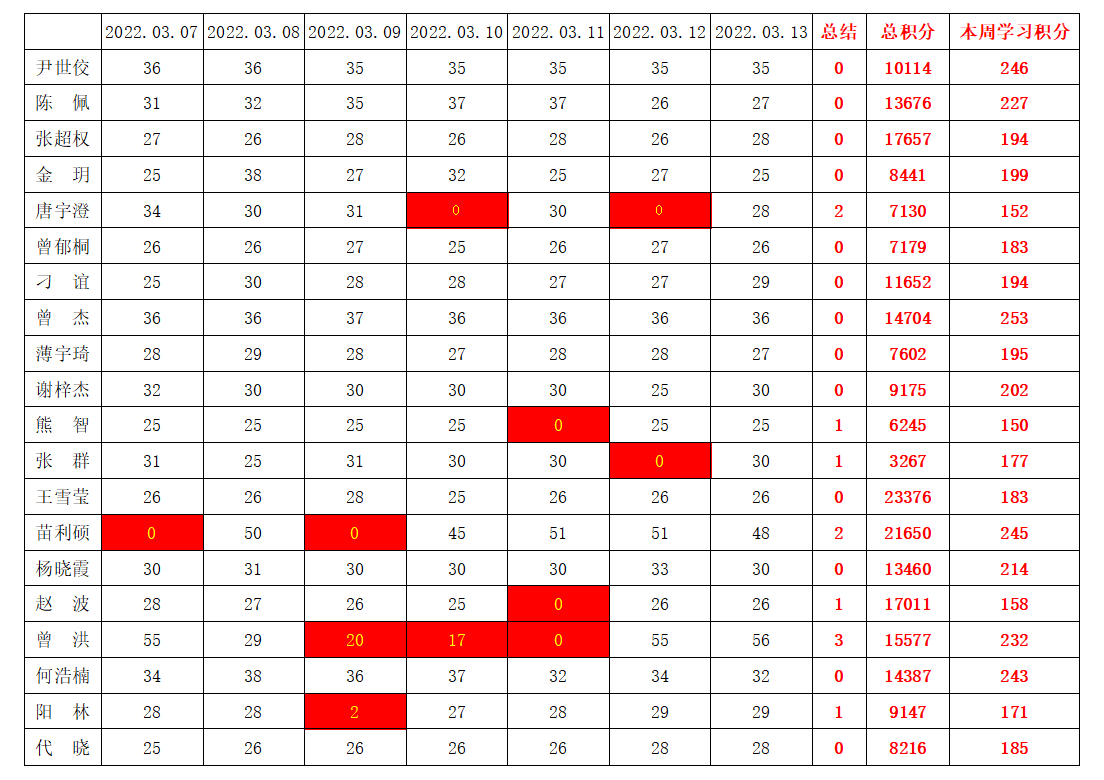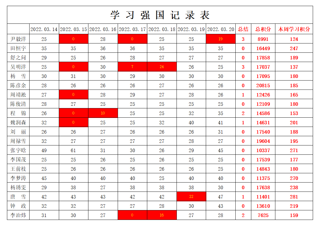 william威廉英国官网学生党支部2021-2022学年第二学期第四周学习强国学习进度