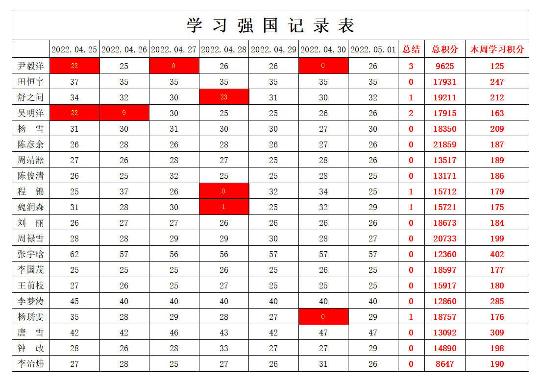 william威廉英国官网学生党支部2021-2022学年第二学期第十周学习强国学习进度