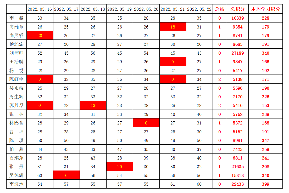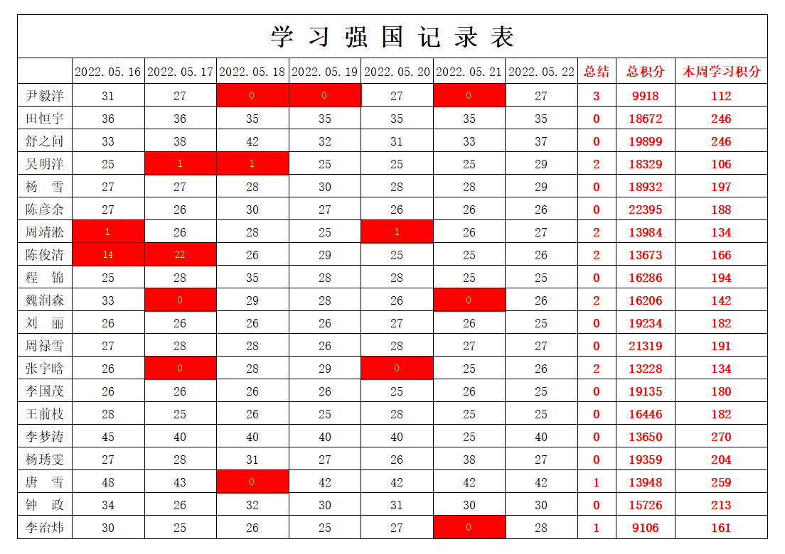 william威廉英国官网学生党支部2021-2022学年第二学期第十三周学习强国学习进度
