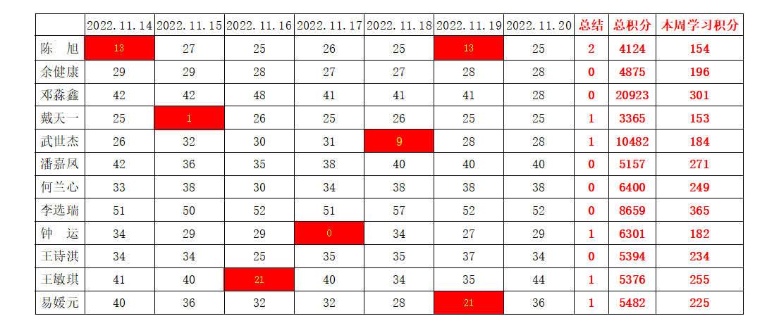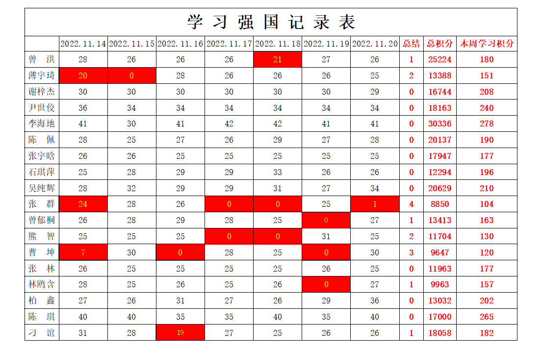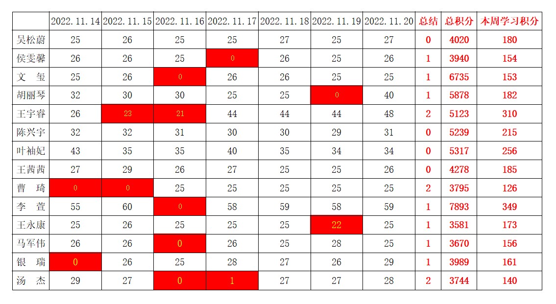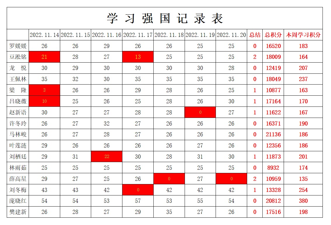 william威廉英国官网学生党支部2022-2023学年第一学期第十周学习强国学习进度
