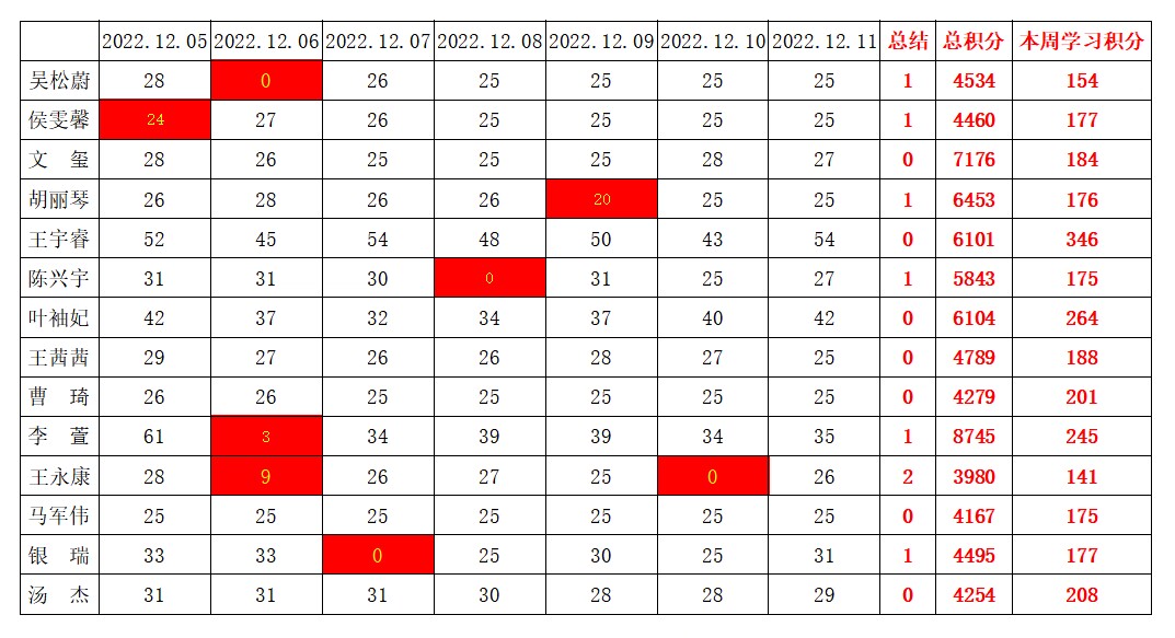 william威廉英国官网学生党支部2022-2023学年第一学期第十三周学习强国学习进度