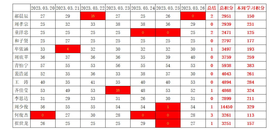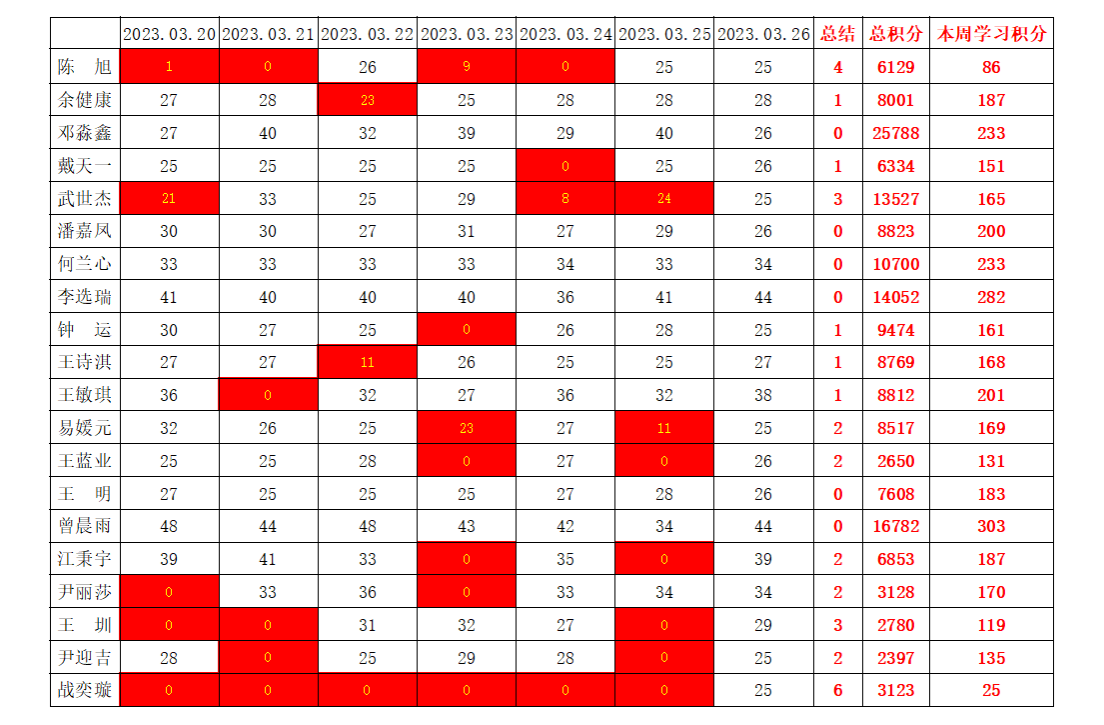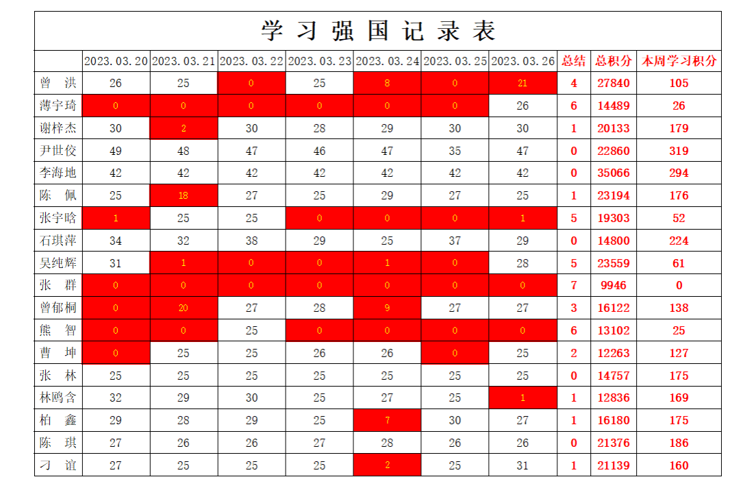 william威廉英国官网学生党支部2022-2023学年第二学期第五周学习强国学习进度