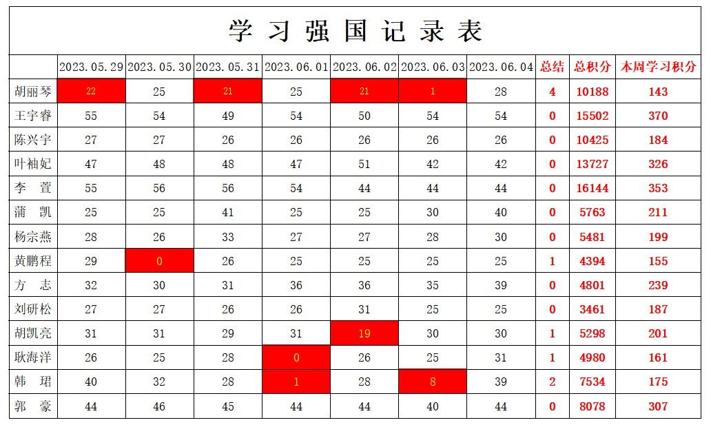william威廉英国官网学生党支部2022-2023学年第二学期第十五周学习强国学习进度