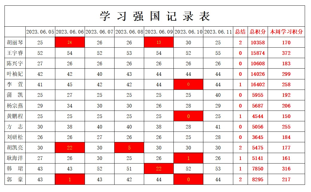 william威廉英国官网学生党支部2022-2023学年第二学期第十六周学习强国学习进度