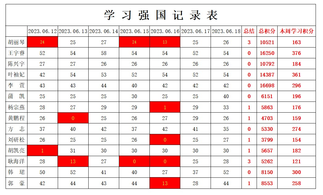 william威廉英国官网学生党支部2022-2023学年第二学期第十七周学习强国学习进度