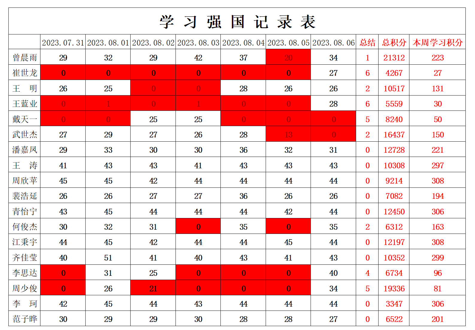 william威廉英国官网学生党支部2023年暑假第四周学习强国学习进度