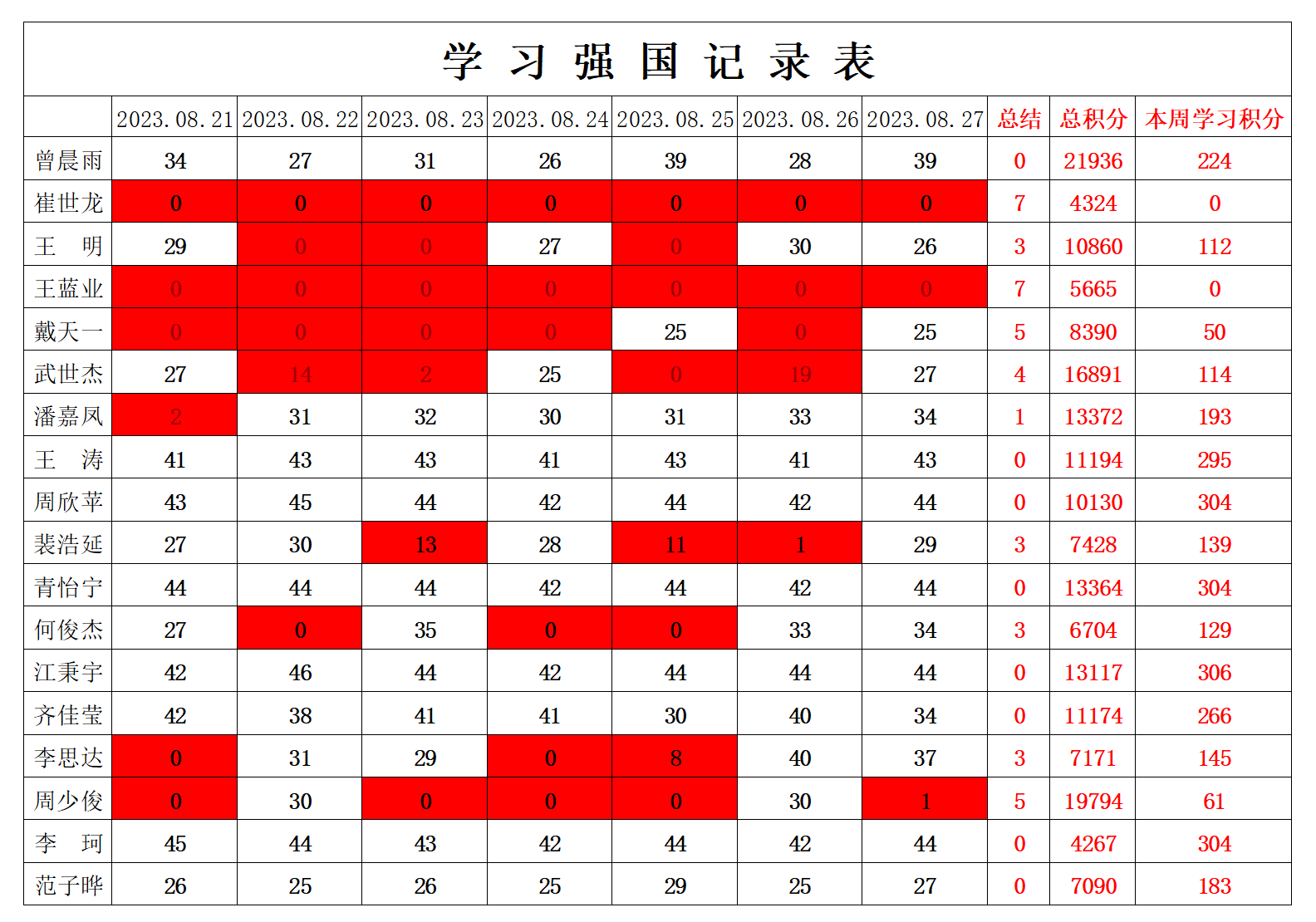 william威廉英国官网学生党支部2023年暑假第七周学习强国学习进度