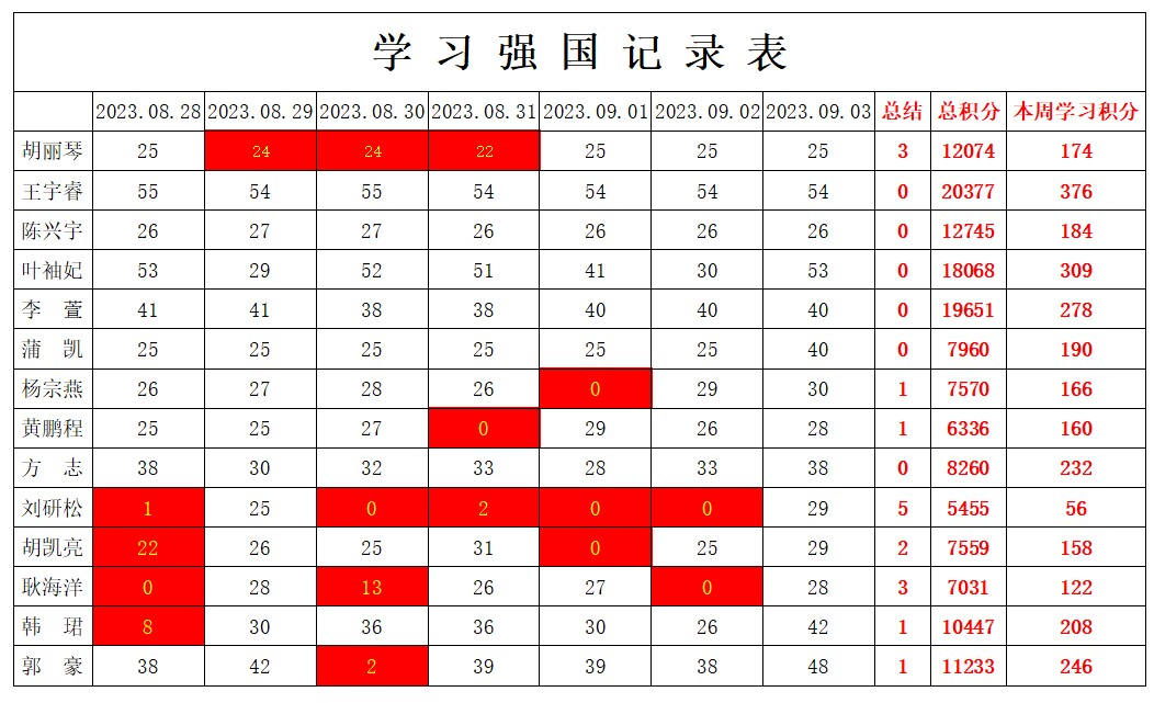 william威廉英国官网学生党支部2023年暑假第八周学习强国学习进度
