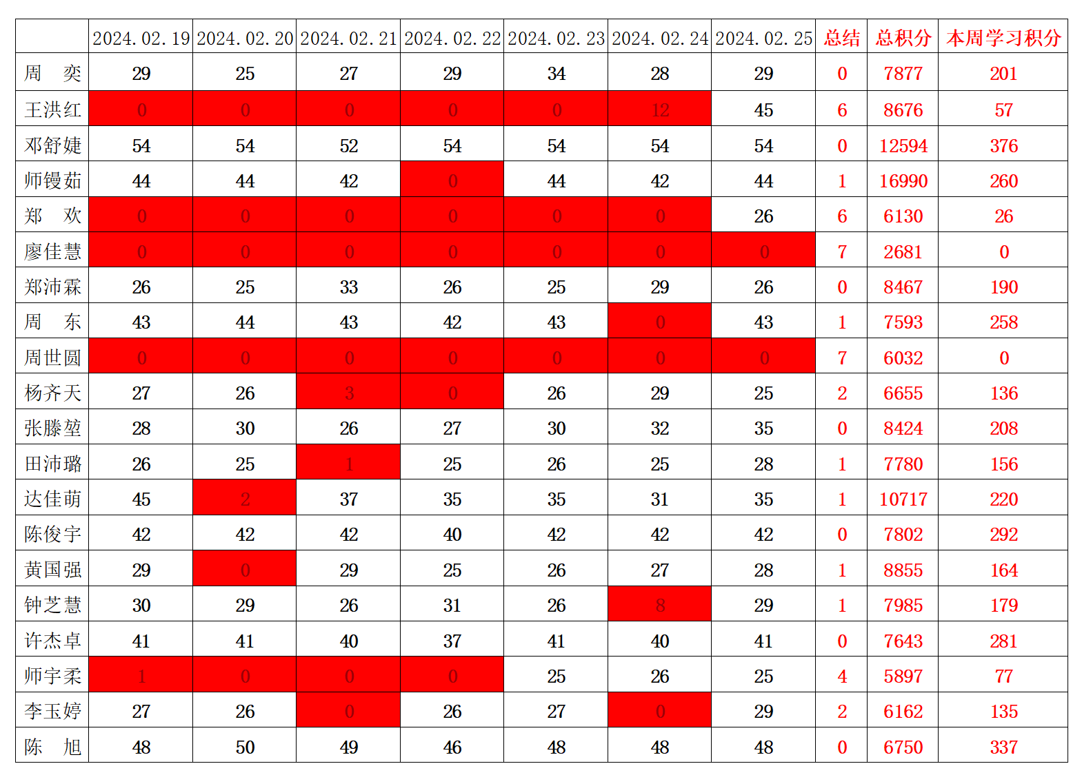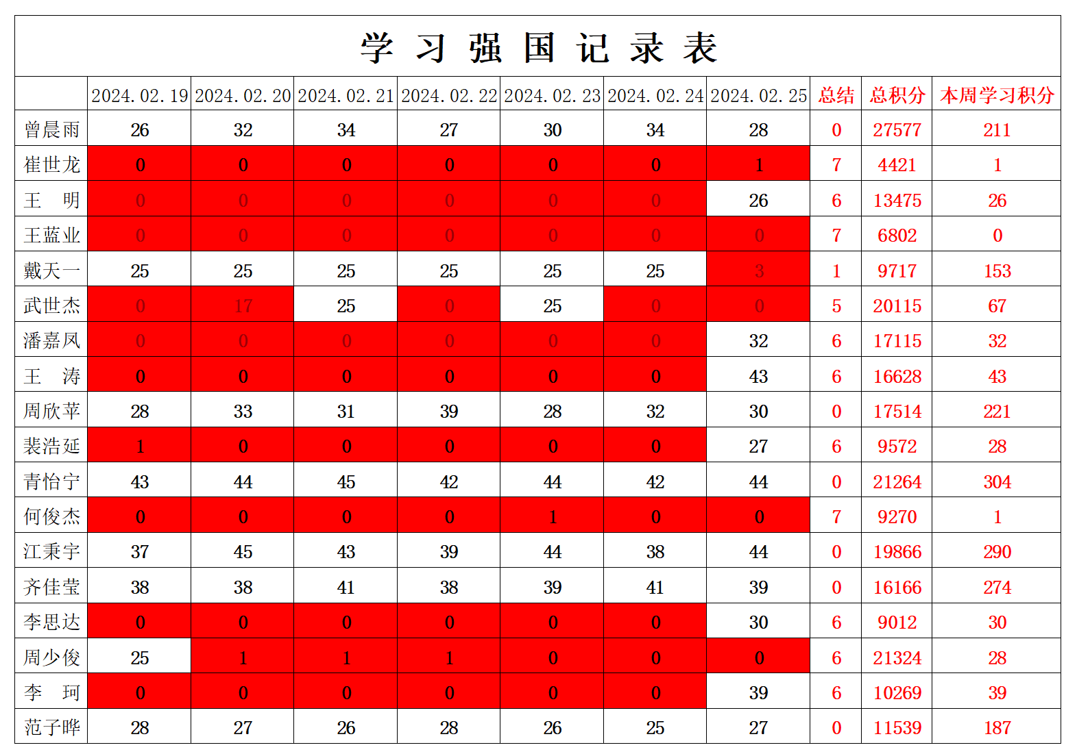 william威廉英国官网学生党支部2024年寒假第七周学习强国学习进度