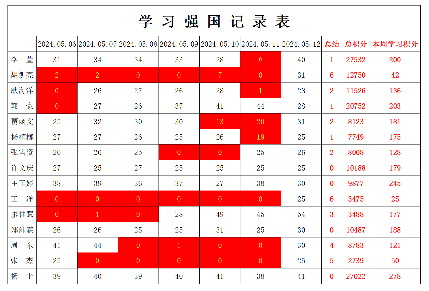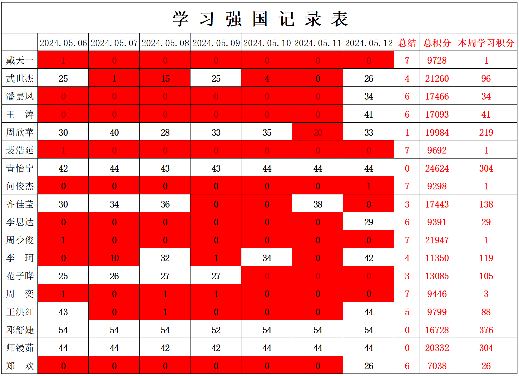 william威廉英国官网学生党支部2023-2024学年第二学期第十一周学习强国学习进度