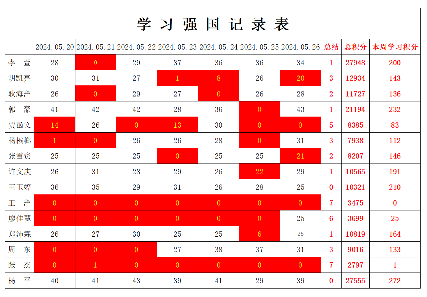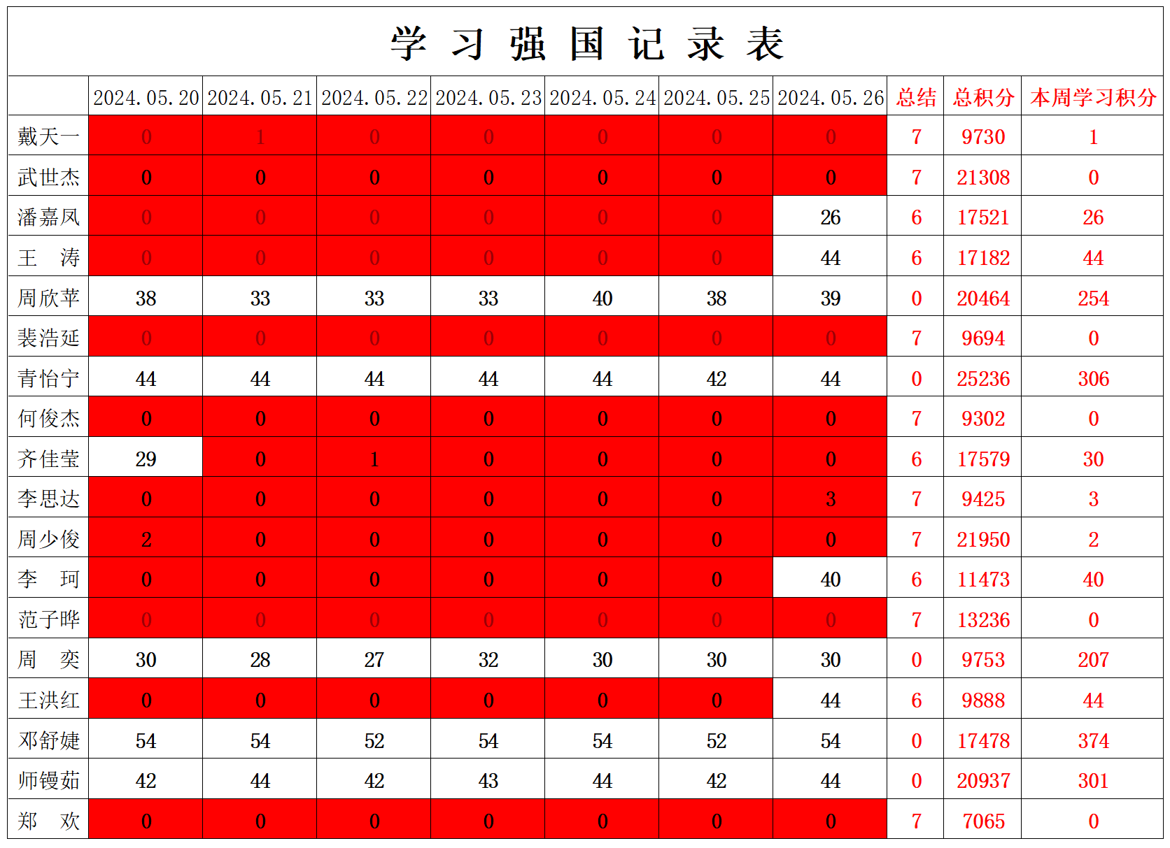 william威廉英国官网学生党支部2023-2024学年第二学期第十三周学习强国学习进度