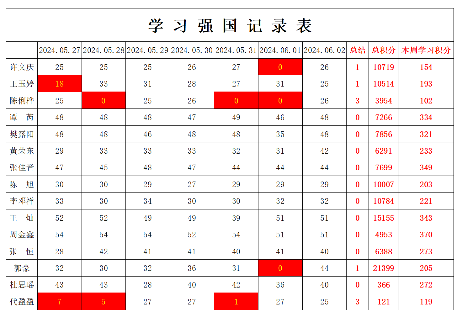 william威廉英国官网学生党支部2023-2024学年第二学期第十四周学习强国学习进度