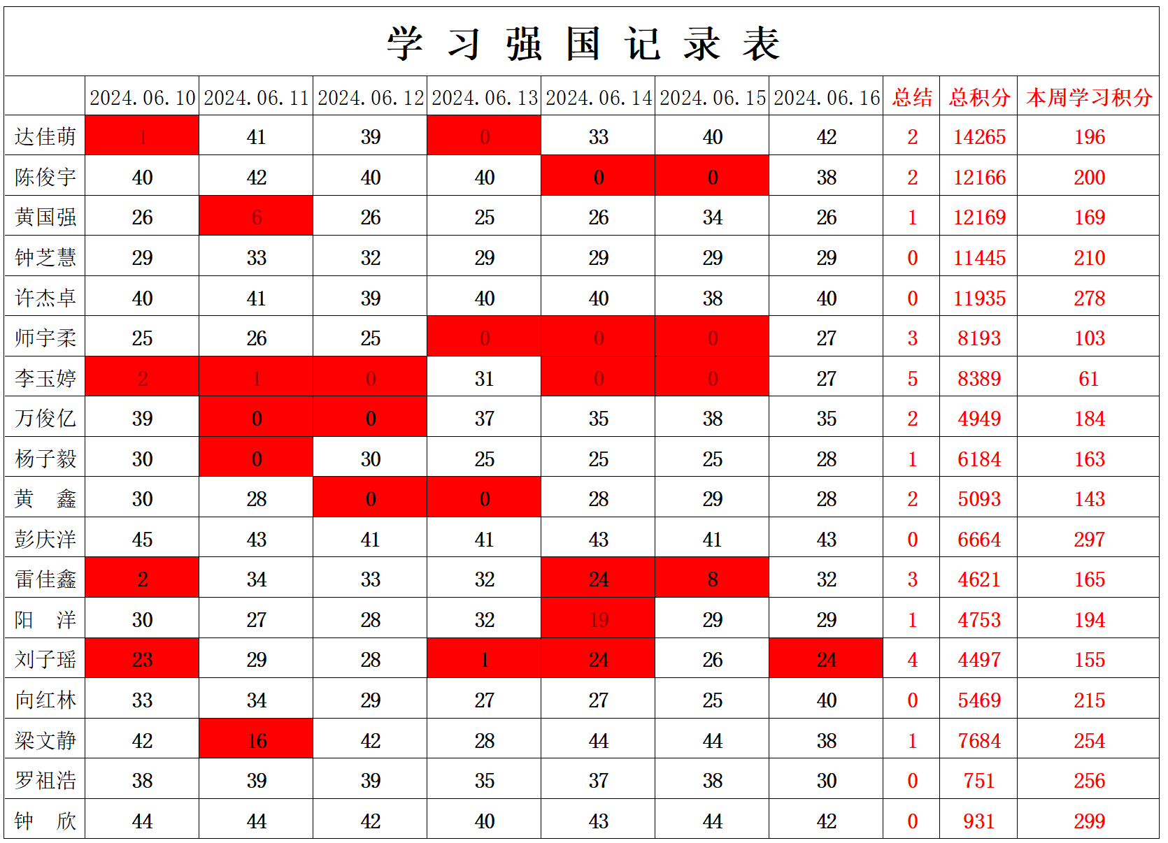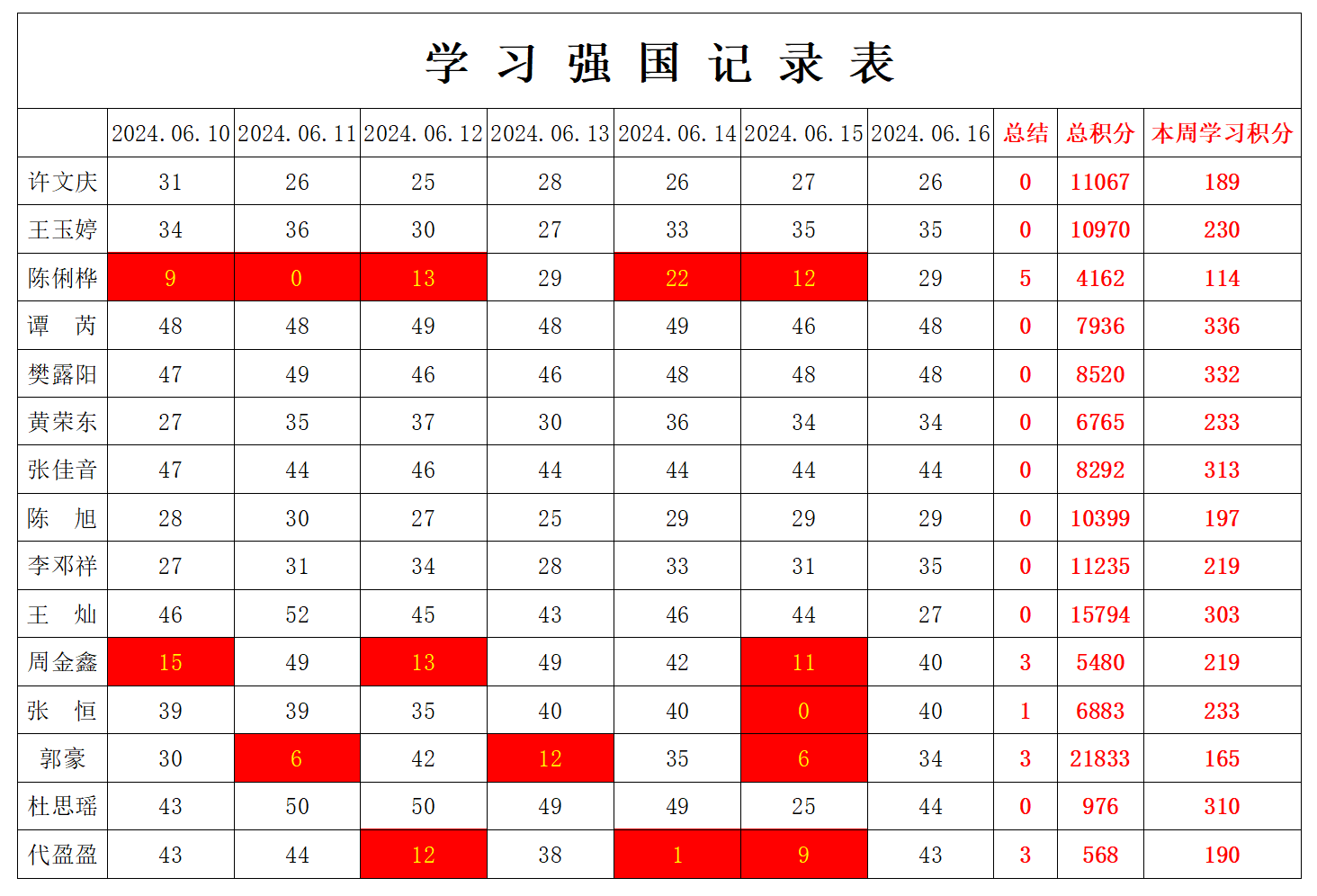 william威廉英国官网学生党支部2023-2024学年第二学期第十六周学习强国学习进度