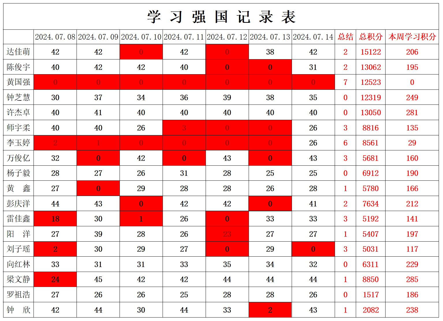 william威廉英国官网学生党支部2024年暑假第一周学习强国学习进度
