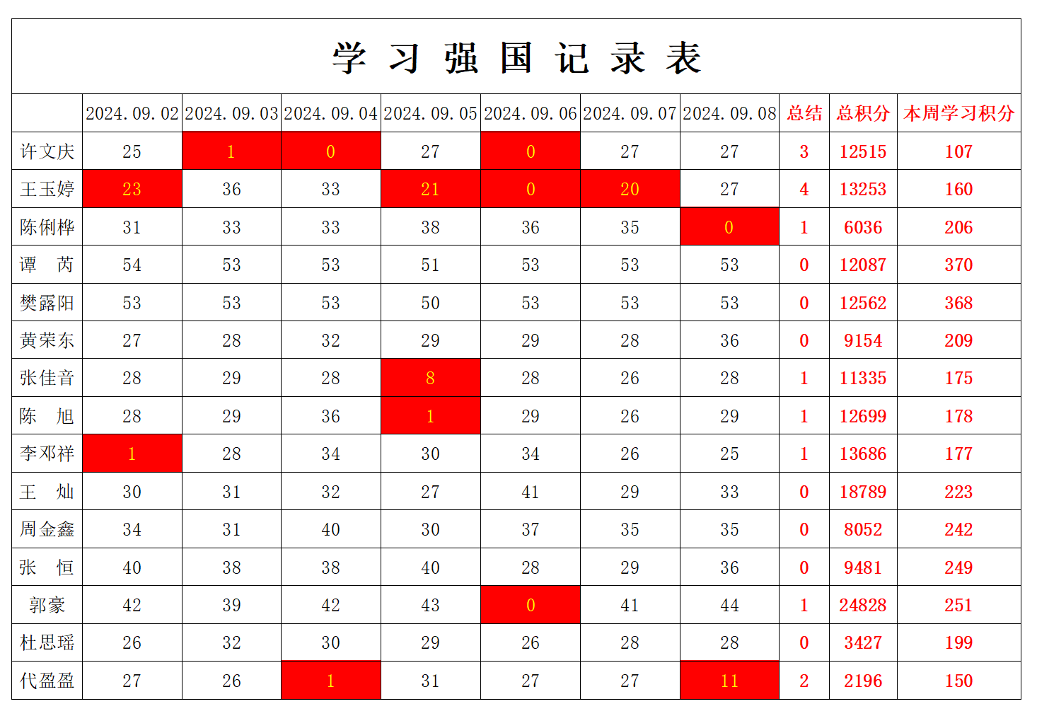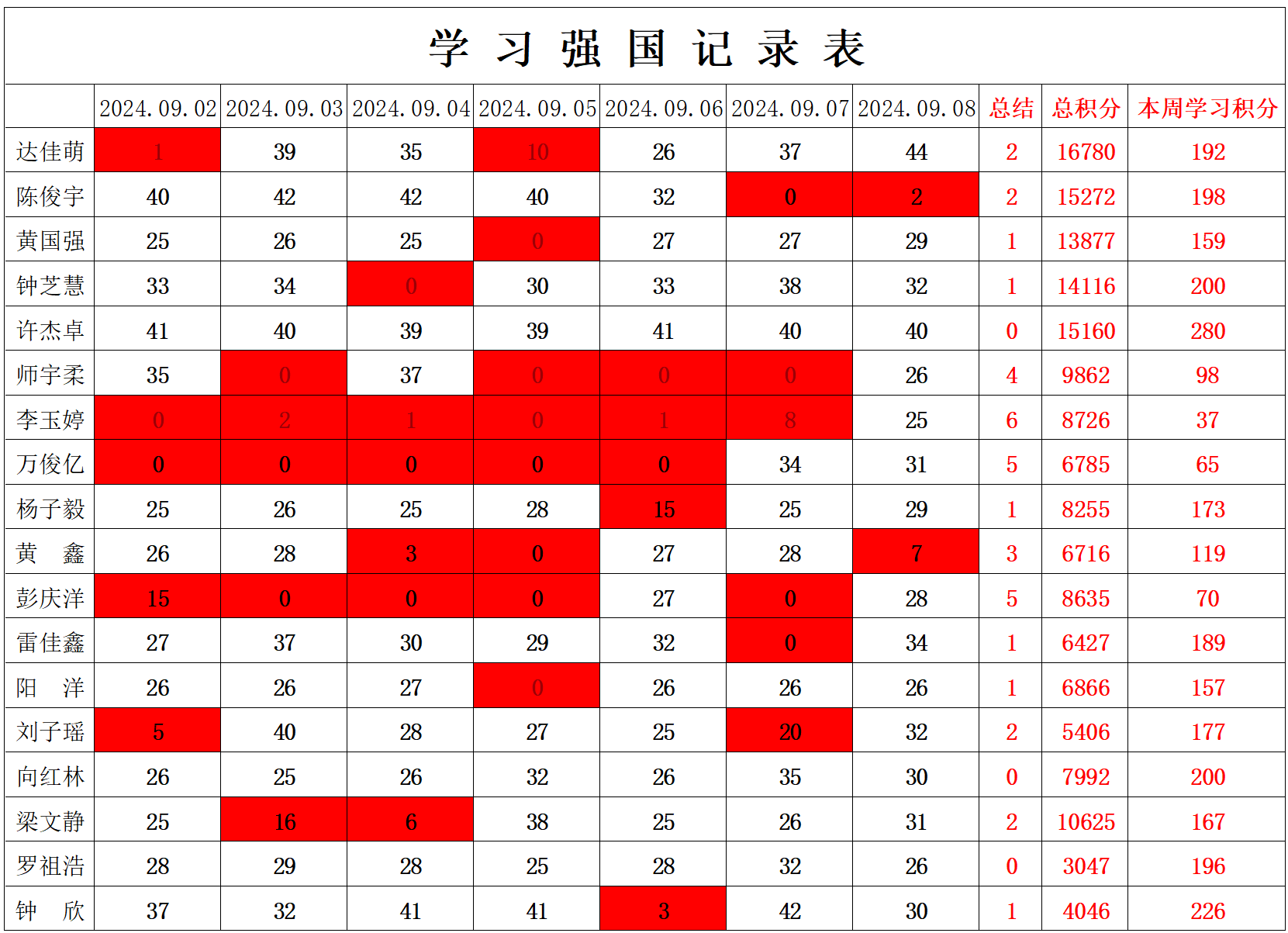 william威廉英国官网学生党支部2024-2025学年第一学期第一周学习强国学习进度