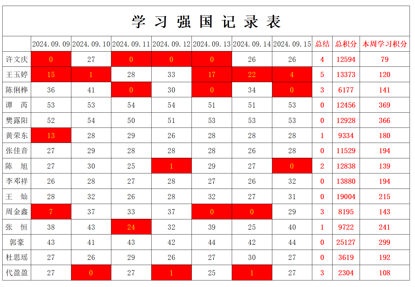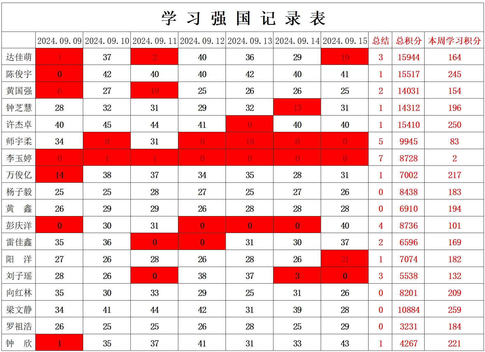 william威廉英国官网学生党支部2024-2025学年第一学期第二周学习强国学习进度