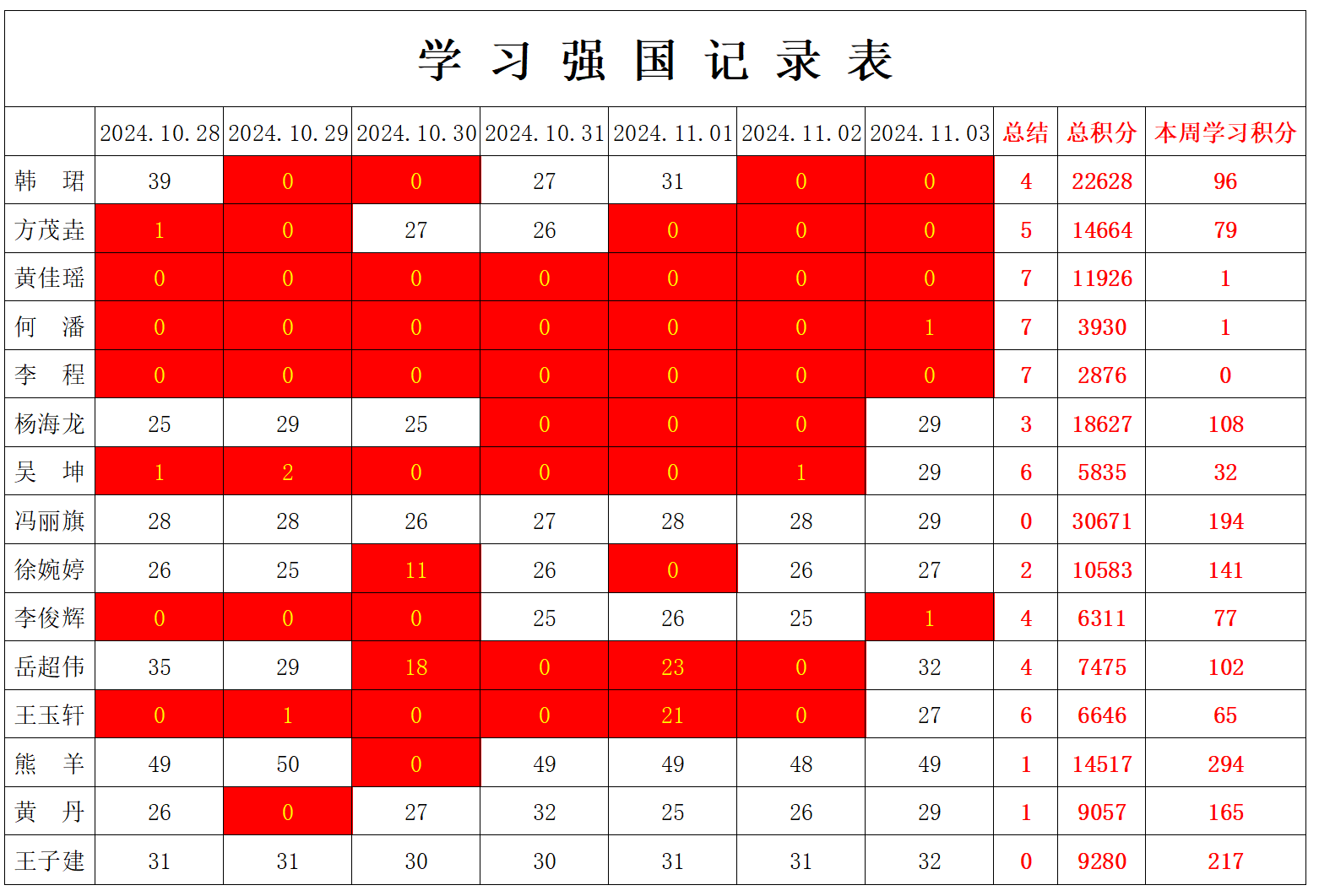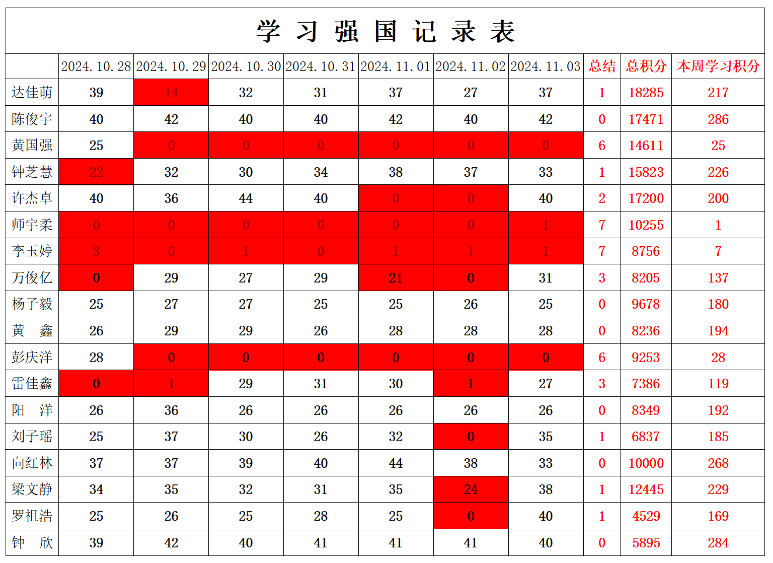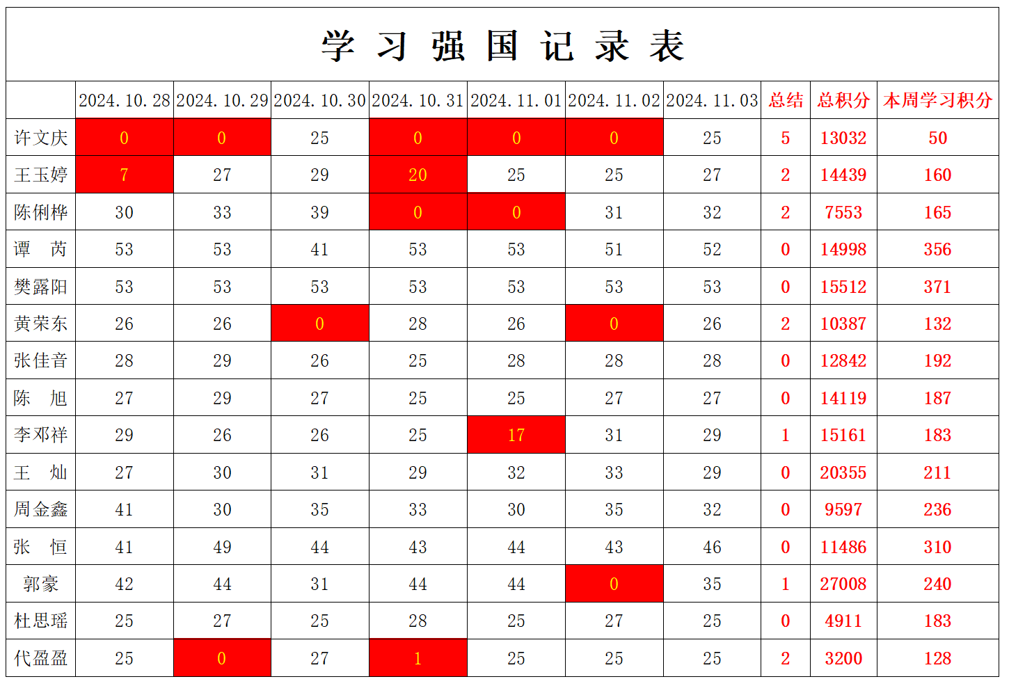 william威廉英国官网学生党支部2024-2025学年第一学期第十周学习强国学习进度