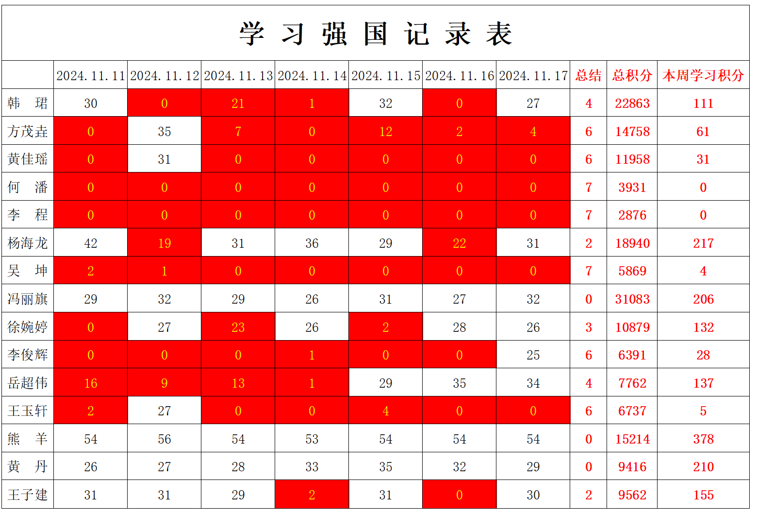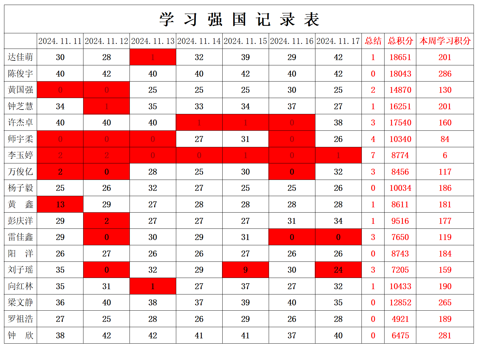 william威廉英国官网学生党支部2024-2025学年第一学期第十二周学习强国学习进度