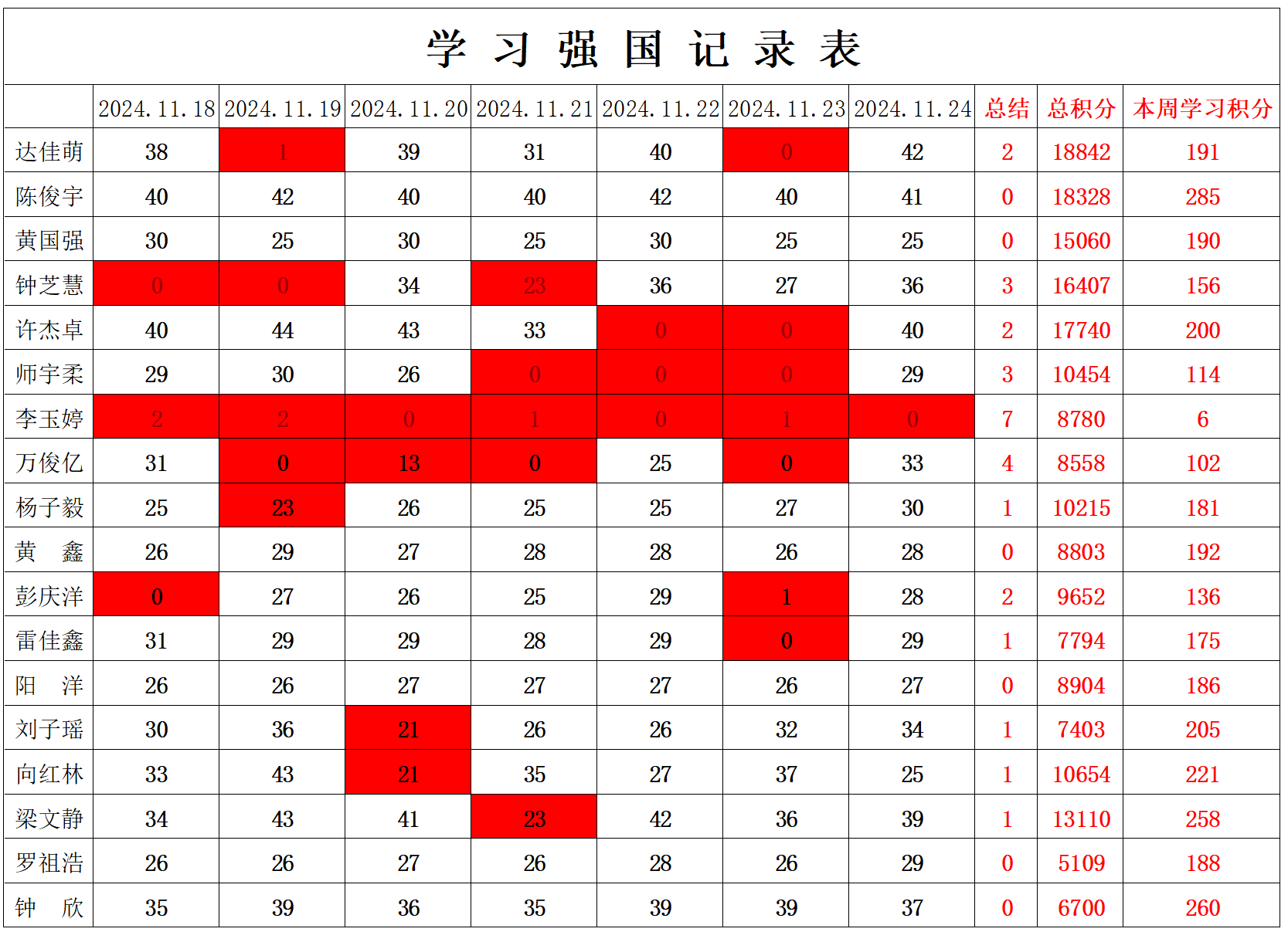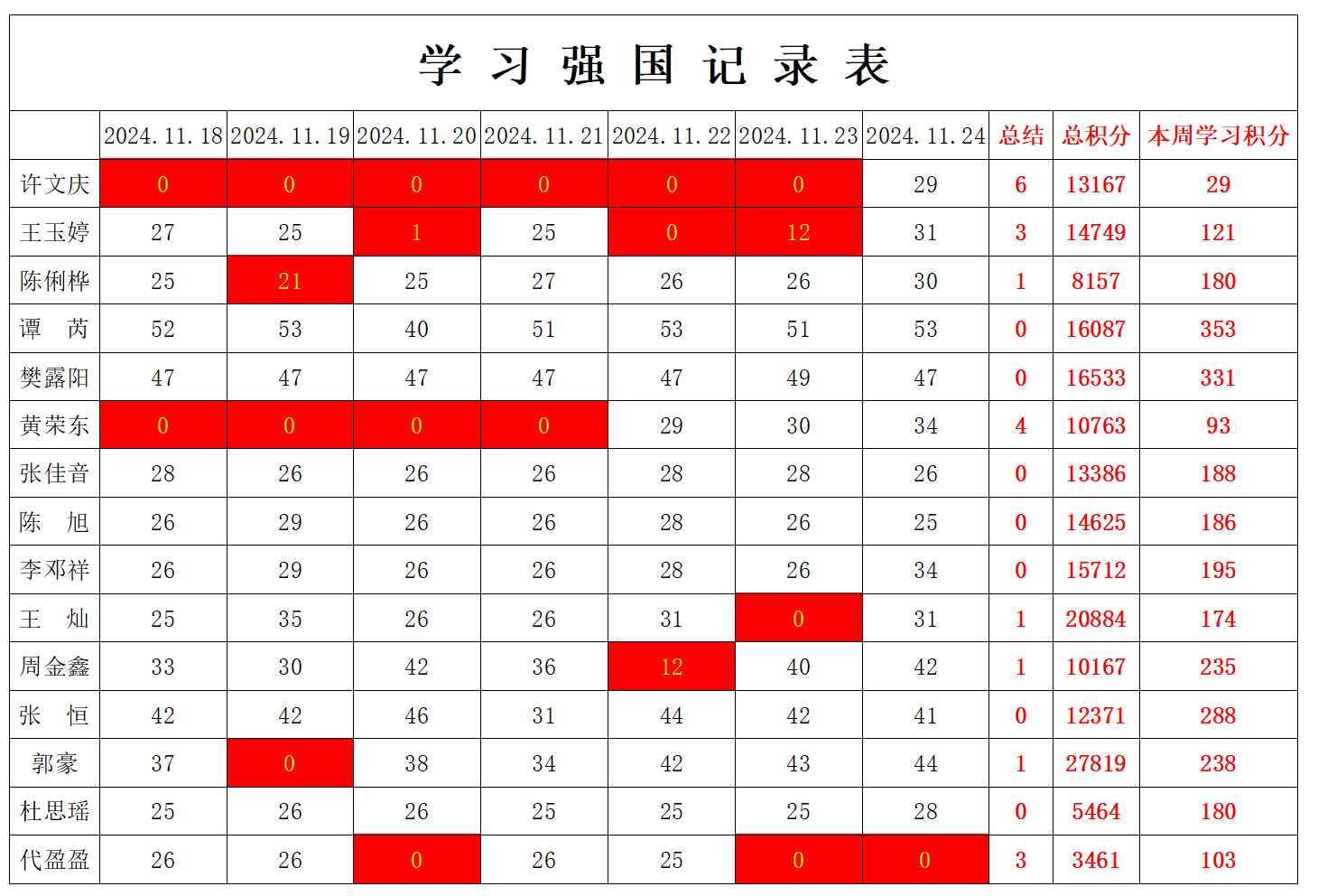 william威廉英国官网学生党支部2024-2025学年第一学期第十三周学习强国学习进度