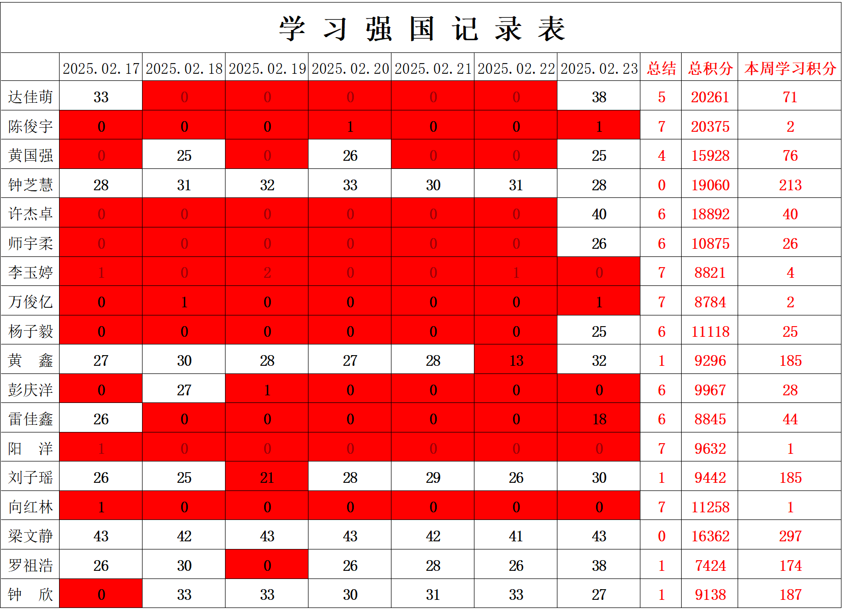 william威廉英国官网学生党支部2025年寒假第六周学习强国学习进度