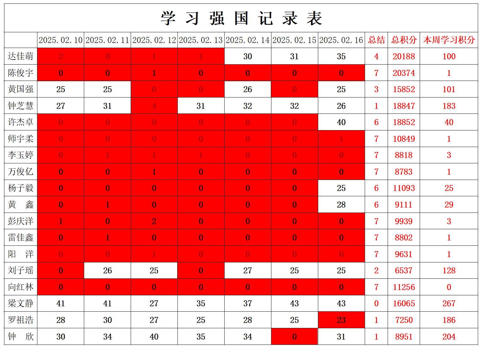 william威廉英国官网学生党支部2025年寒假第五周学习强国学习进度
