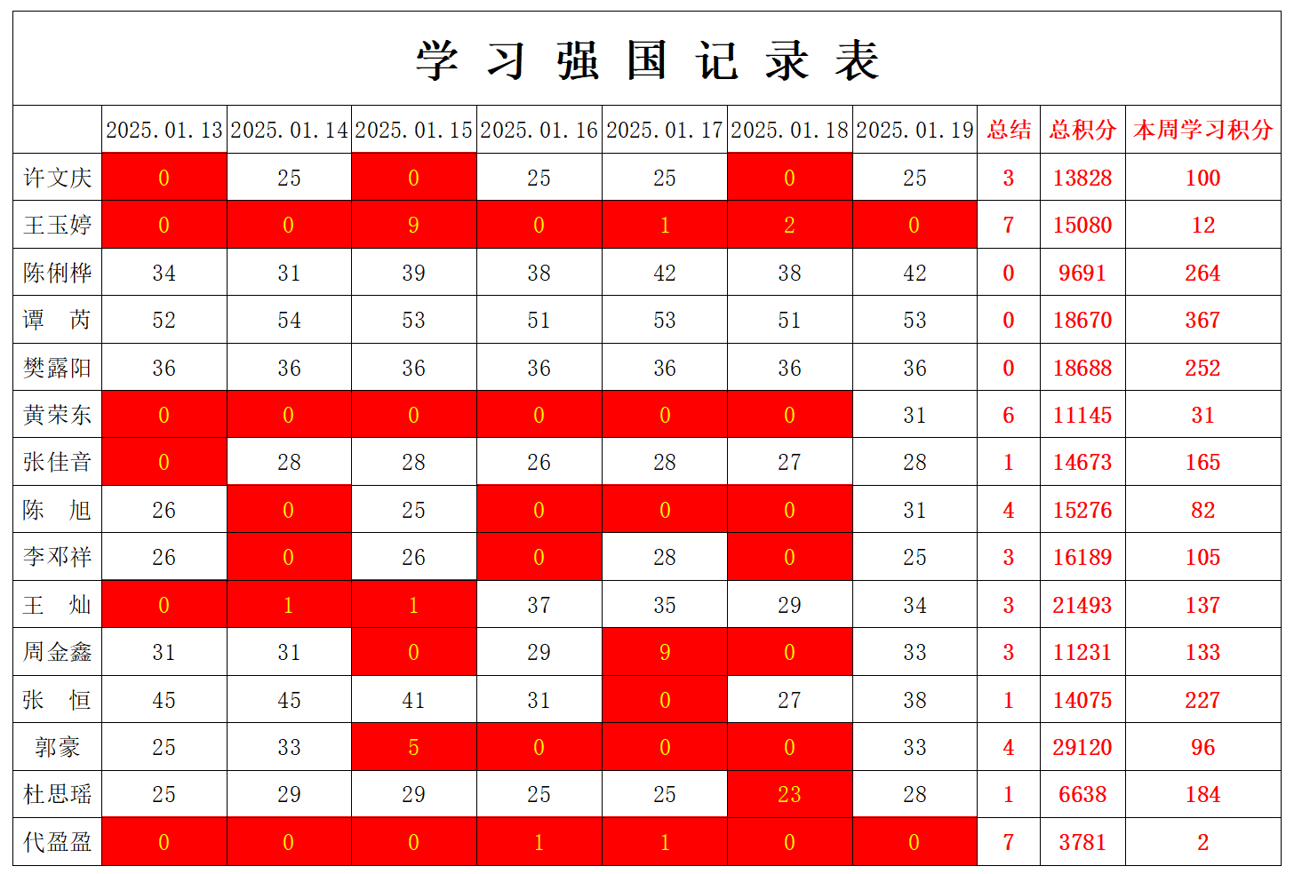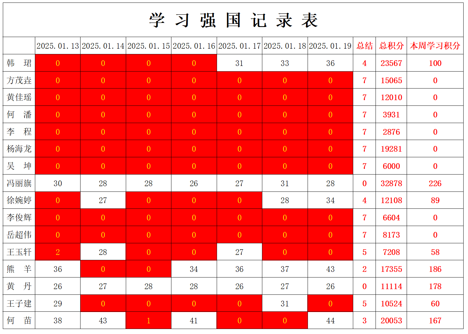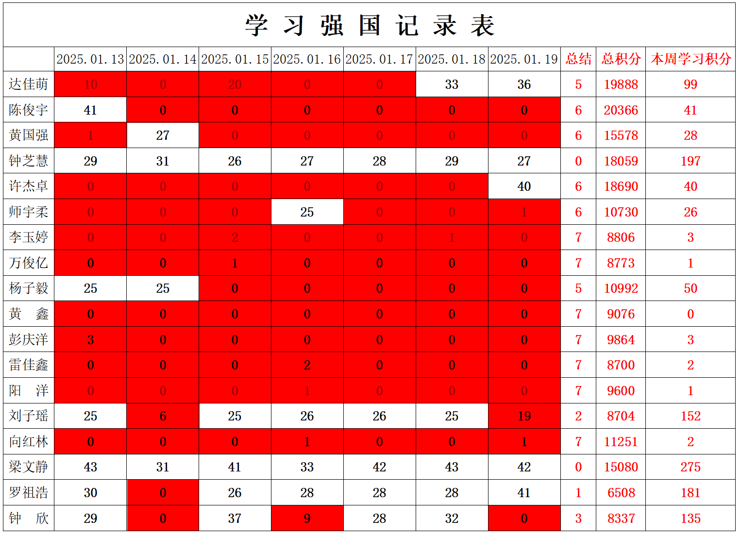 william威廉英国官网学生党支部2025年寒假第一周学习强国学习进度