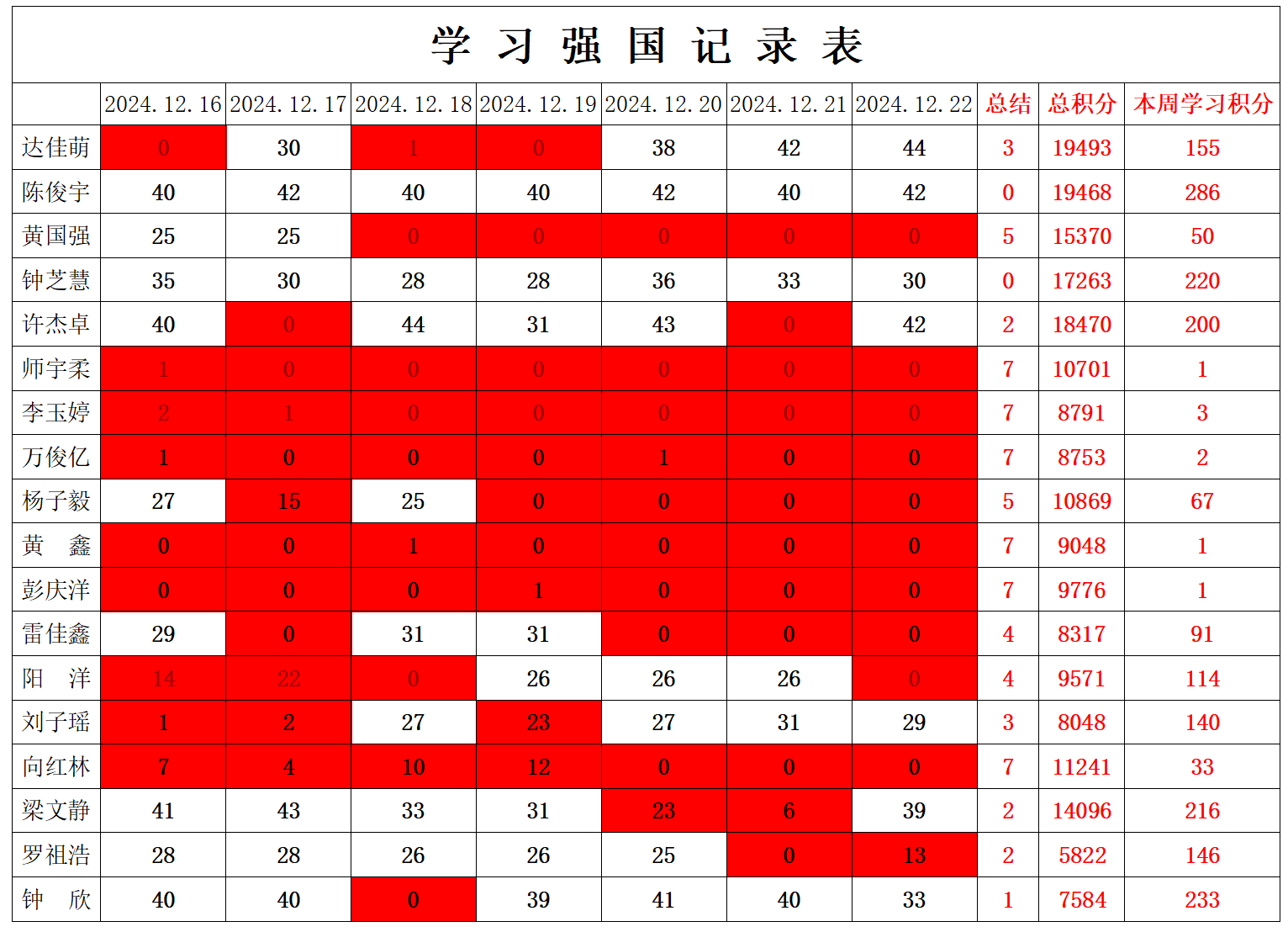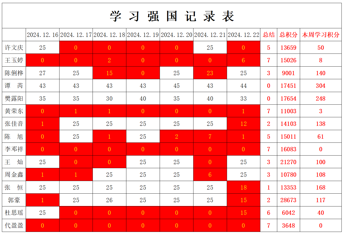 william威廉英国官网学生党支部2024-2025学年第一学期第十七周学习强国学习进度