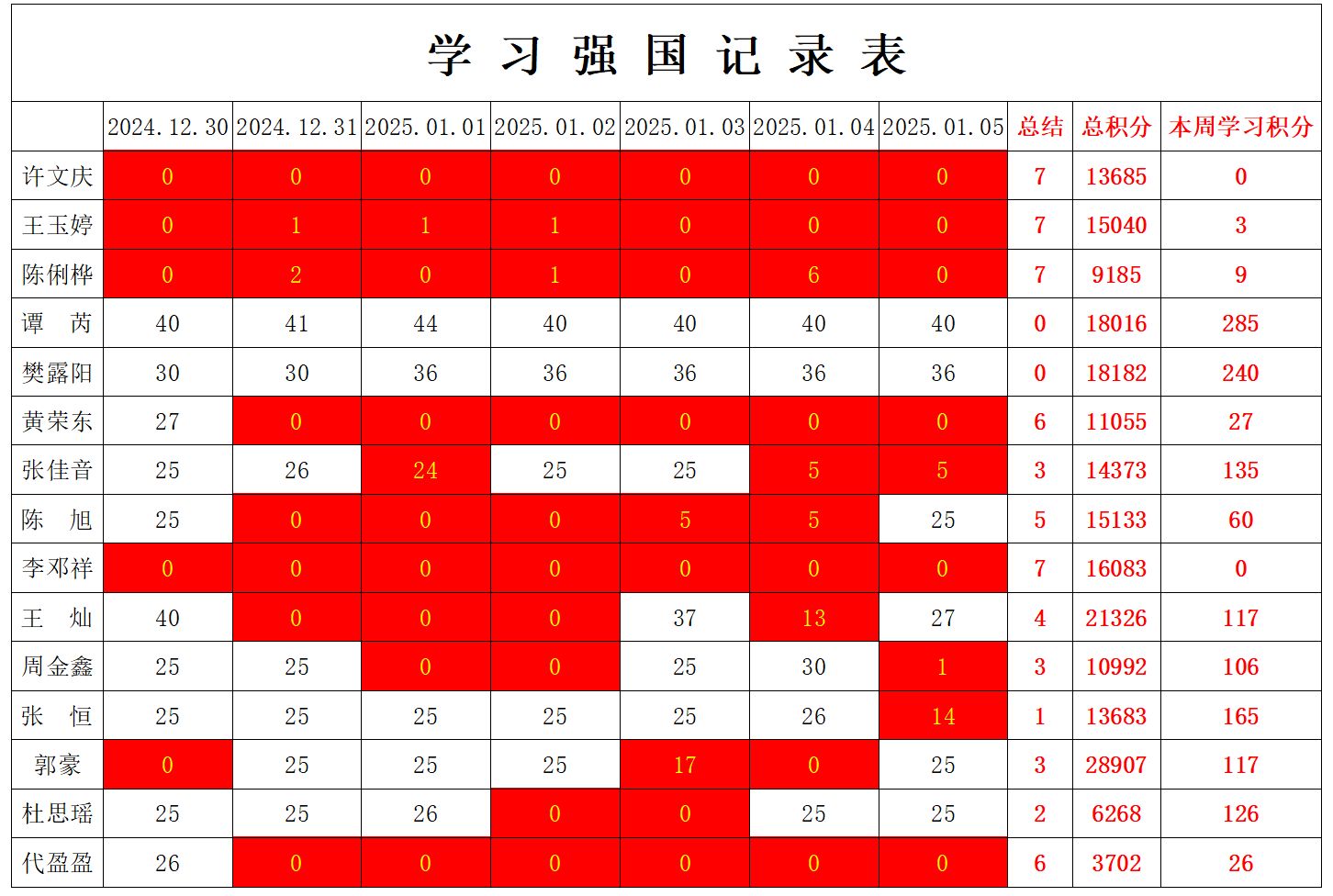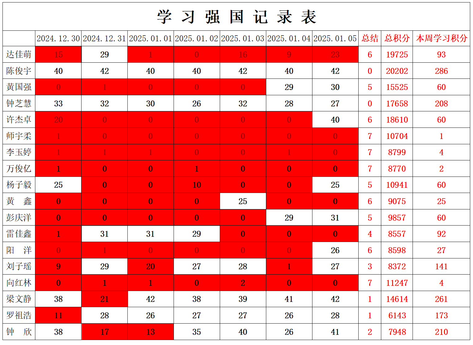 william威廉英国官网学生党支部2024-2025学年第一学期第十九周学习强国学习进度