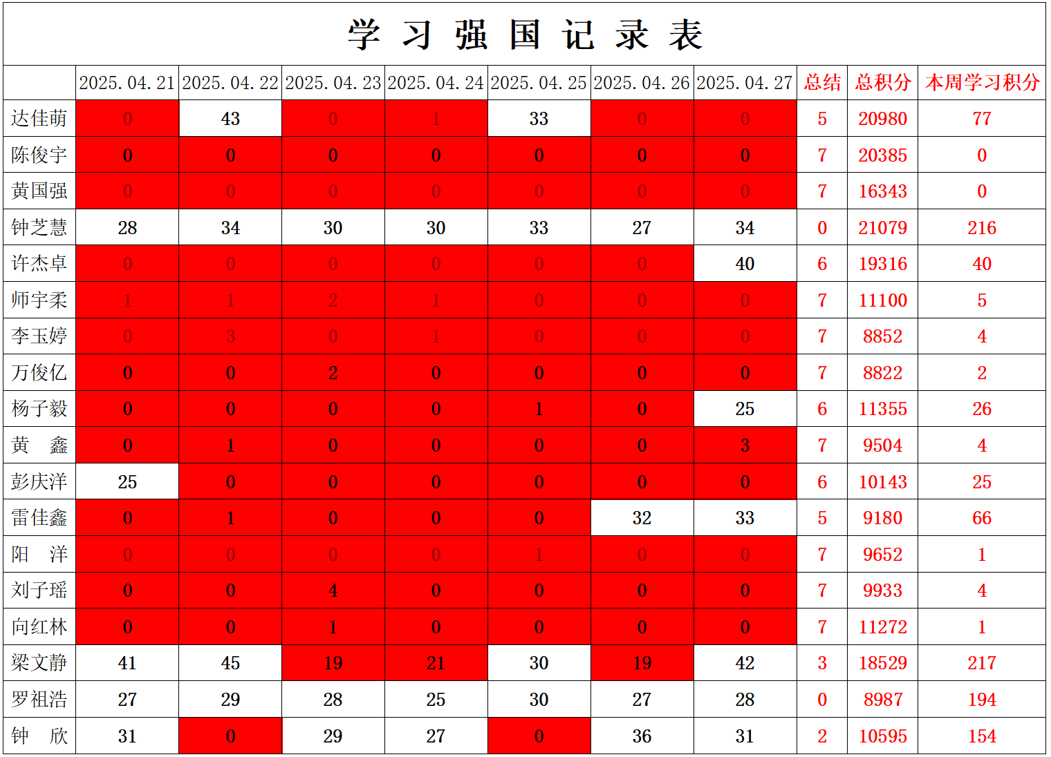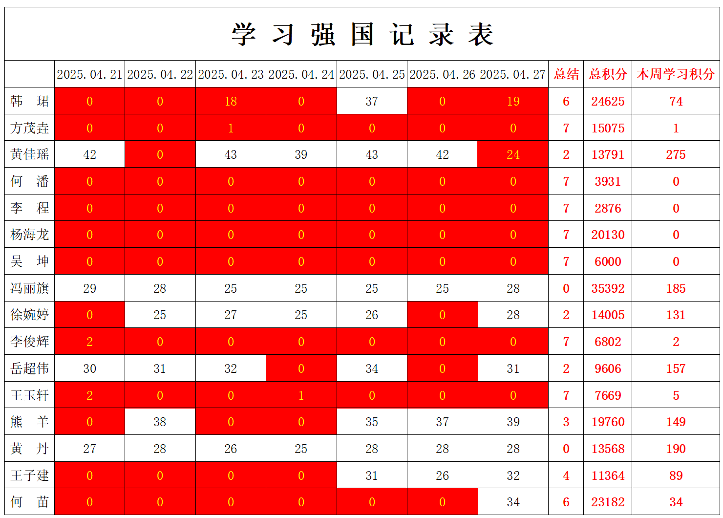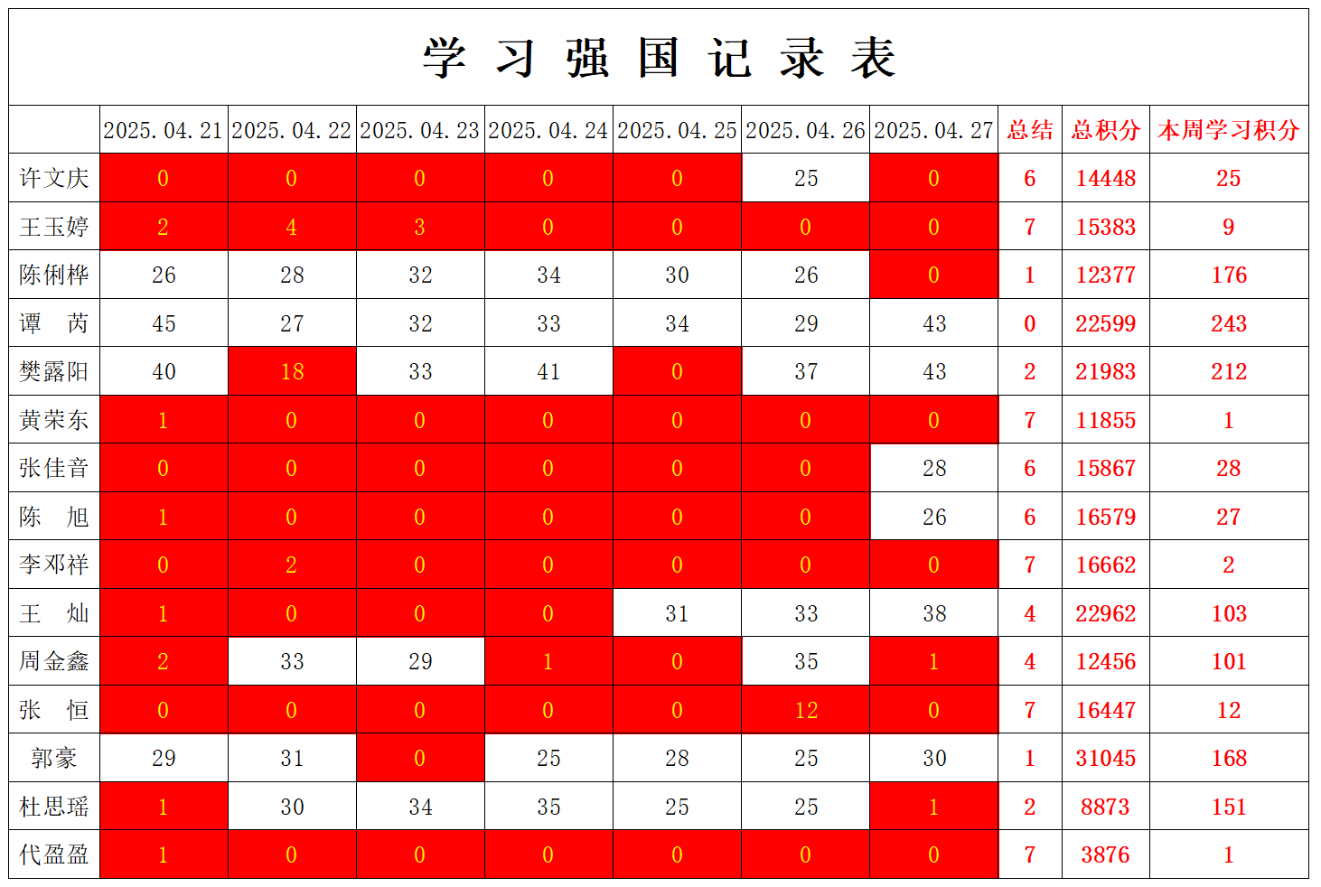 william威廉英国官网学生党支部2024-2025学年第二学期第九周学习强国学习进度