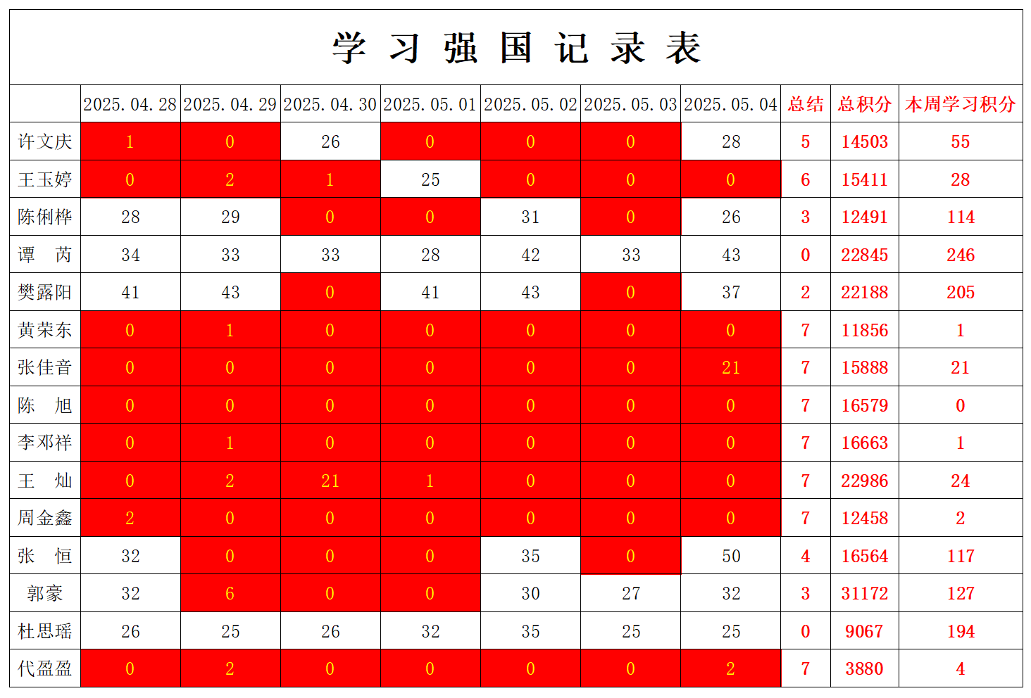william威廉英国官网学生党支部2024-2025学年第二学期第十周学习强国学习进度