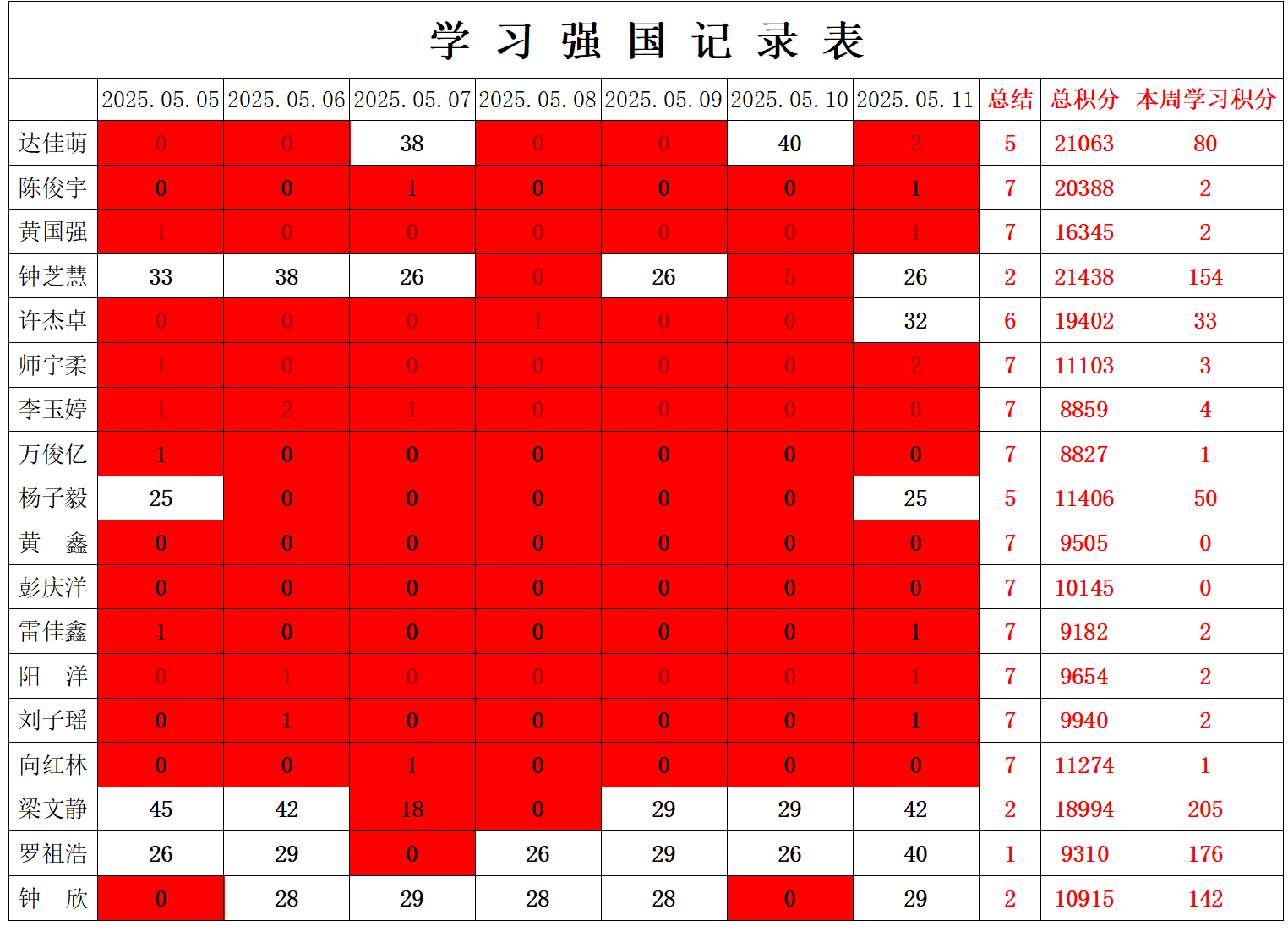 william威廉英国官网学生党支部2024-2025学年第二学期第十一周学习强国学习进度